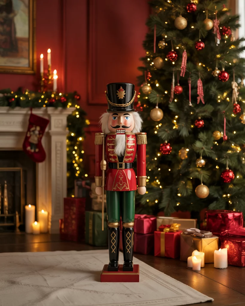 Your living room becomes a holiday stage with a nutcracker theme and fancy king colours and classical themes. Imagery rich golden and red tones, cushions of velvet, ornamental hanging decorations etc. Place a couple of large nutcracker figures on either side of your fire place or television and also add some brocade ribbons and a green tree. This fashion best suits the traditional lovers who also love the dramatic.
