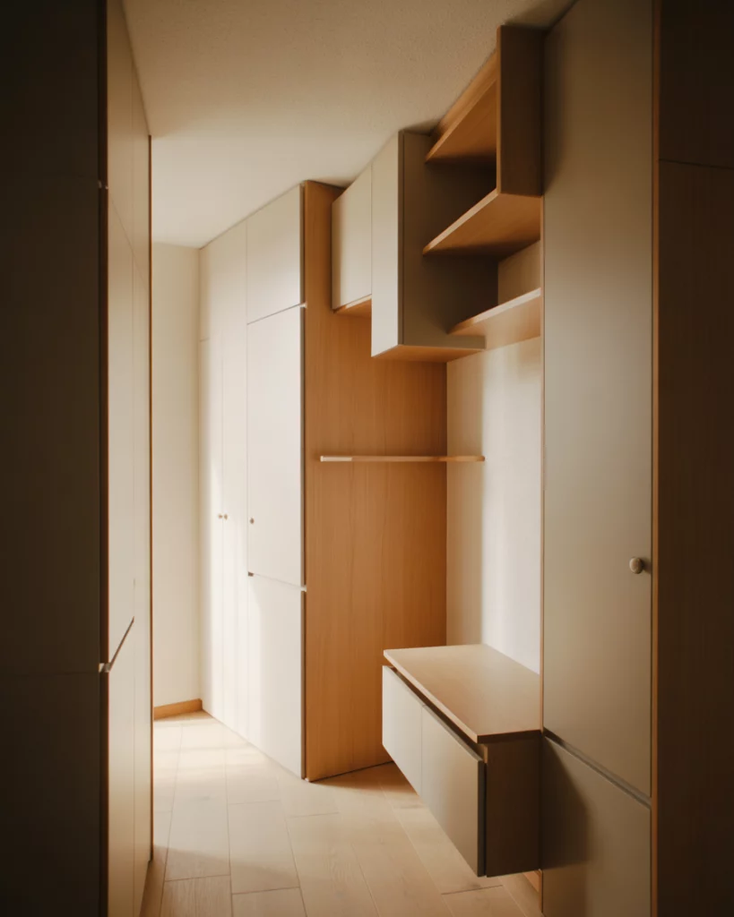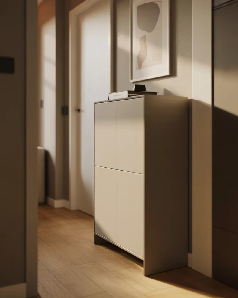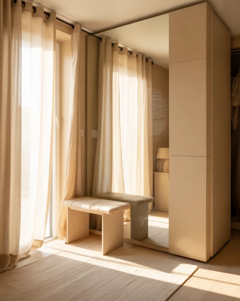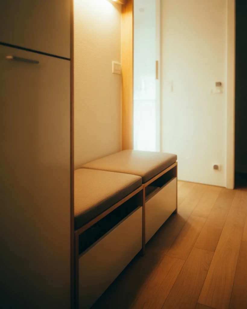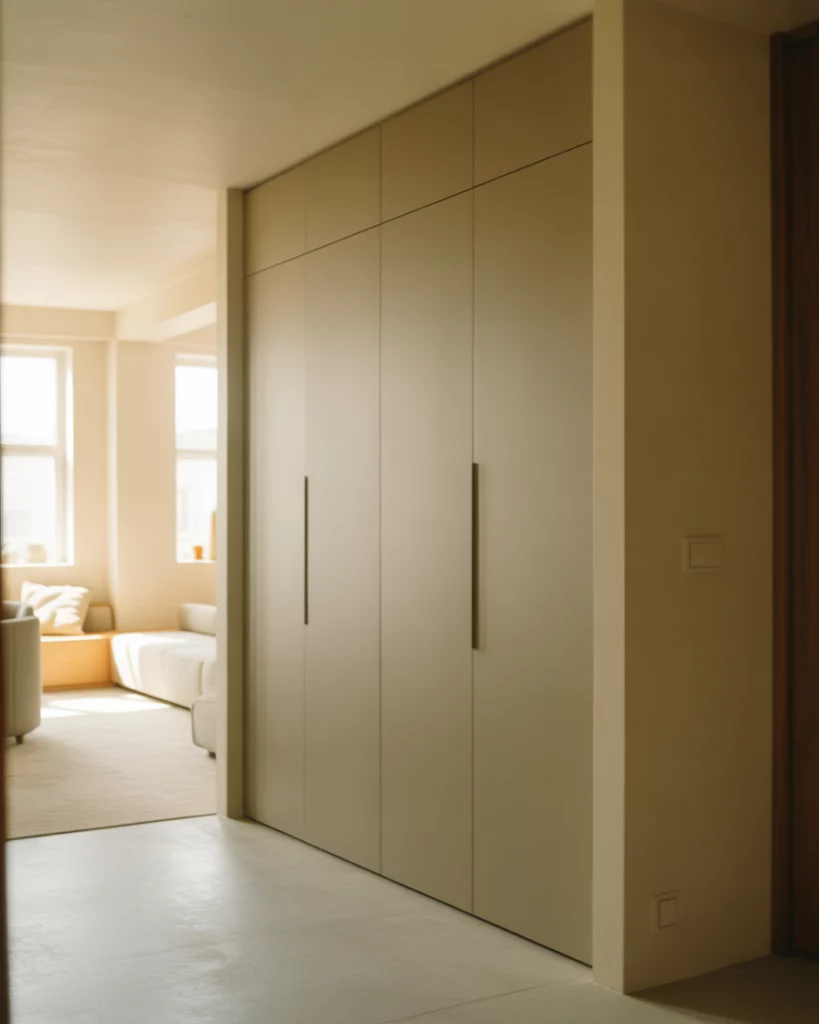 Even a shallow closet can elevate a narrow hallway when designed thoughtfully. In 2026, entry closets ditch bulky doors for flat panels or curtains, especially in apartment entrance layouts. The goal is visual quiet, letting storage disappear instead of dominating the space. A practical insight designers share: internal organization matters more than exterior size. Adjustable shelves and vertical compartments keep clutter contained, preventing that familiar “overflow” feeling just weeks after installation.