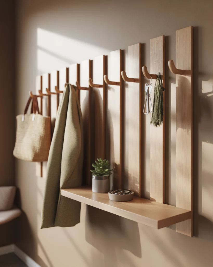 In contemporary small entryways, simple coat hooks have transcended into thoughtful design. 2026 will favor sculptural hooks that will be organized in loose formations instead of customary racks. They provide a daily access rhythm to keep essentials in narrow hallways, and in entrance home decor, they add visual interest to empty walls. Designers have observed a spacing preference rather than a design preference. Hooks that are too high or too closely spaced are often left empty. With even mixed heights, flexible systems are established rather than rigid ones.