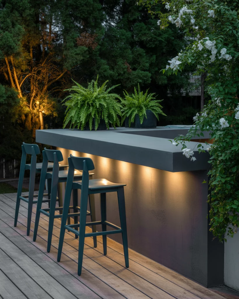 Add a fold-down or wall-mounted bar counter to your deck or patio. This a budget easy diy projects idea turns a blank wall into a place for morning coffee or evening drinks. Use treated wood or stone-look panels for durability. It’s a conversation starter and a cozy nook for entertaining friends—even if you live in a townhouse with a tiny yard.