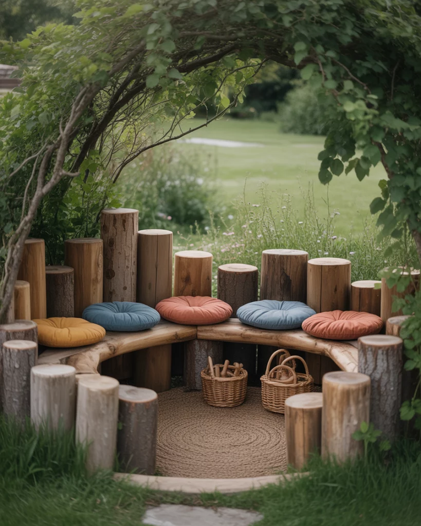 Create a natural play space for kids with wooden stepping stones, logs, and low planters. Use a budget easy diy projects materials like mulch, rope swings, and salvaged wood. This kind of kid friendly garden encourages imagination and sensory play while keeping the space dog friendly too. It’s simple, safe, and blends beautifully with surrounding landscaping.