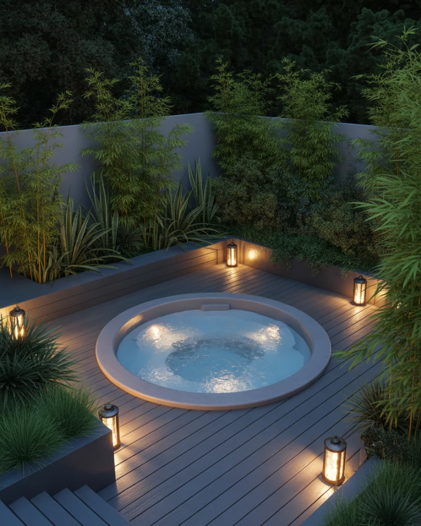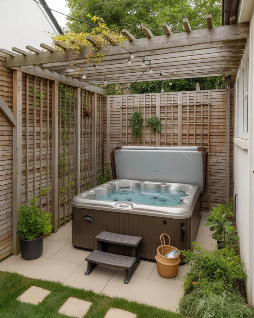 Allocate a corner of your small yard to a hot tub with surrounding privacy screens or trellises. Use a budget easy diy projects approach—build a simple deck pad, erect lattice screens, and plant vines around them. This nook becomes a cozy retreat for adults while leaving most of the yard free for kids or dogs. It’s ideal for townhouses or tight lots where a full pool won’t fit.