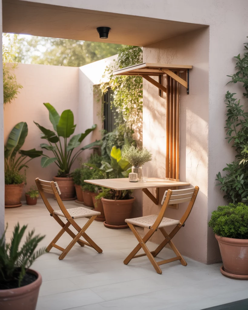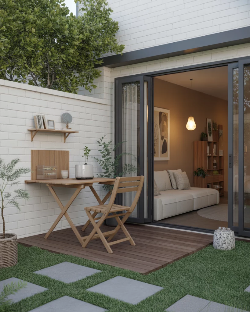 In a tight garden, install folding tables, chairs, and benches that can be collapsed when not in use. Use wall-mounted fold-down furniture and a budget easy diy simple garden design to maximize flexibility. During the day, yard space is open for kids, dogs, or games; by evening, it becomes a cozy dining or lounging area. This approach is especially smart for renter friendly patio setups.