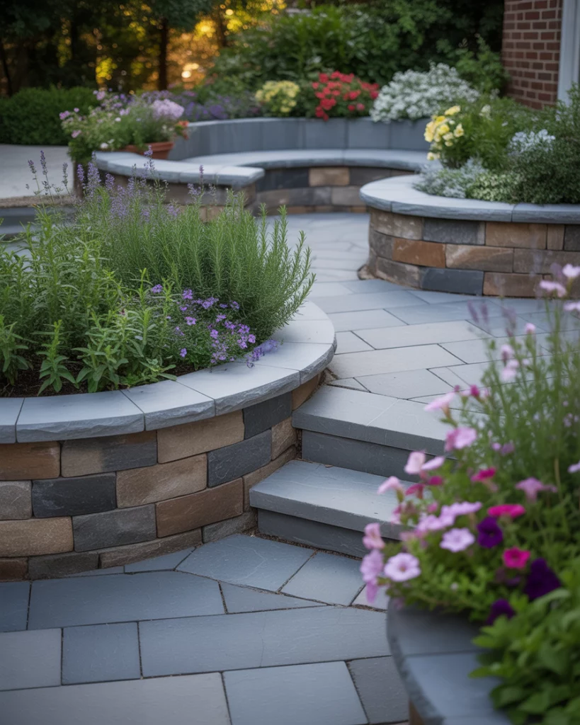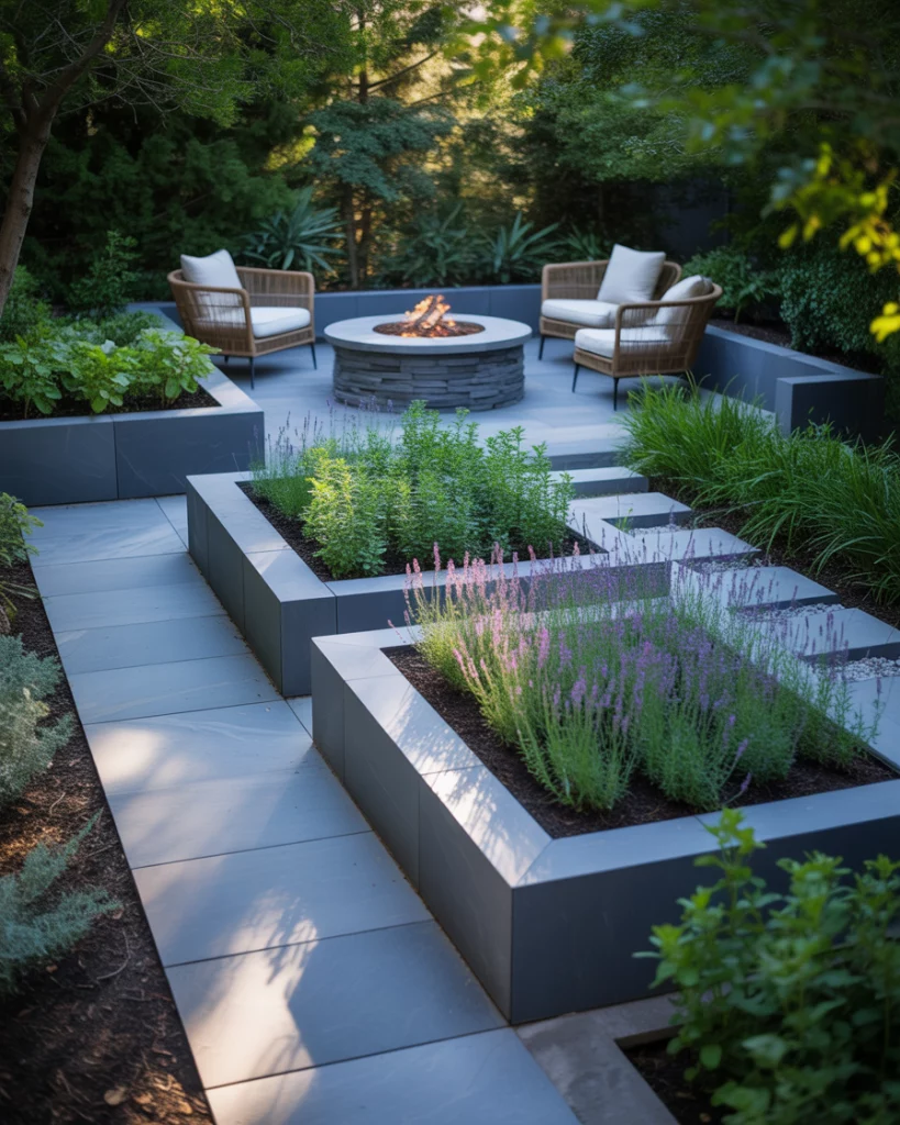 Divide your backyard into zones using hardscape like pavers, stepping stones, or decomposed granite, and offset them with raised planter beds for vegetables or ornamentals. This gives structure and visual interest while keeping maintenance low. You get a budget easy patios diy projects feel because the beds can be simple timber boxes. Add seating pockets or small benches among the beds for multifunctional use.