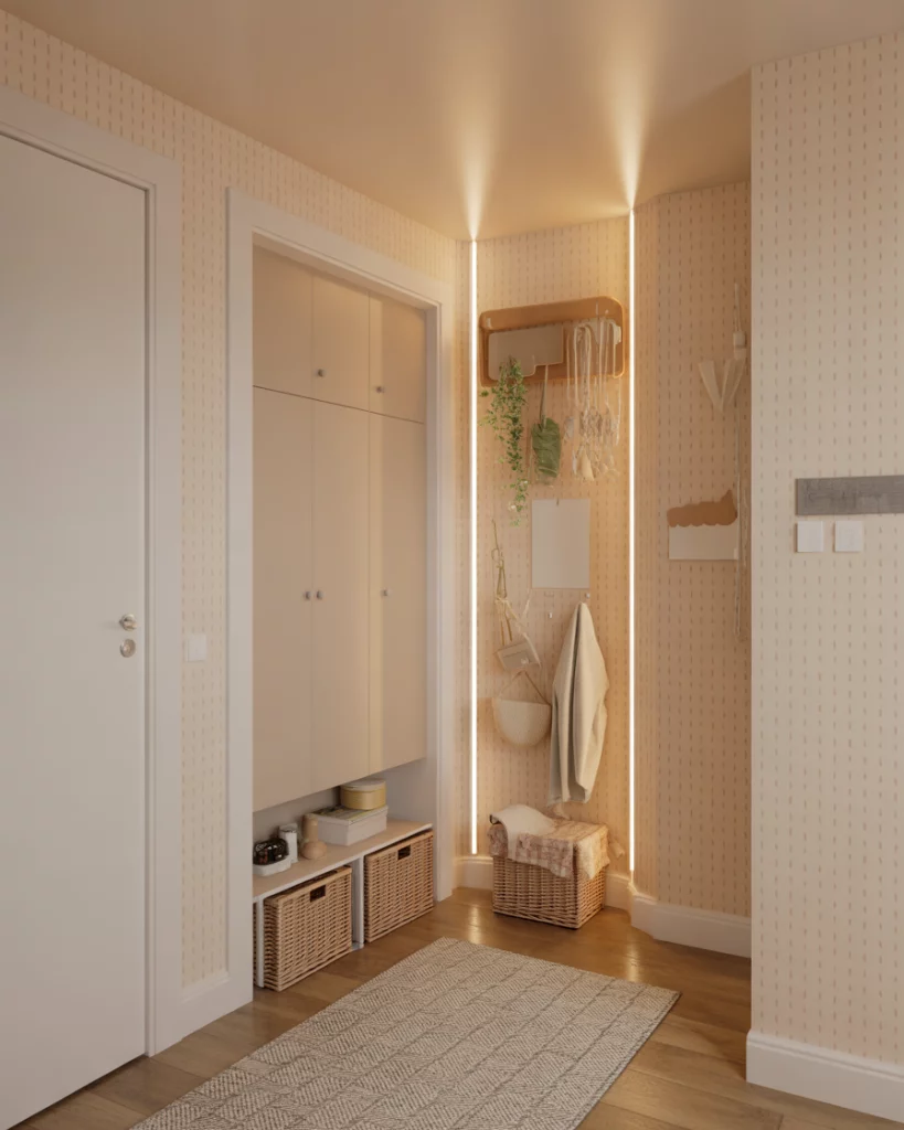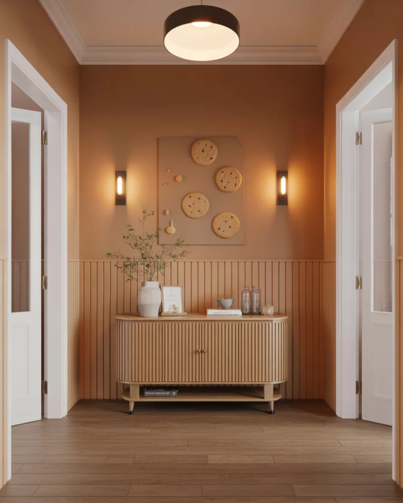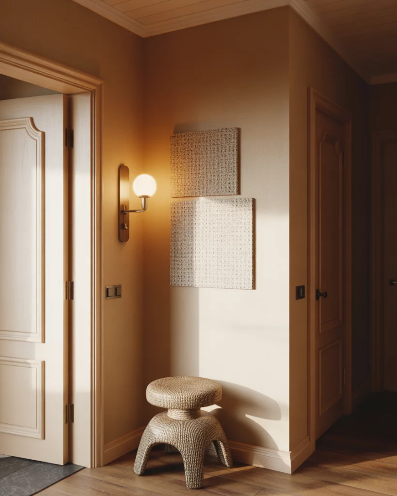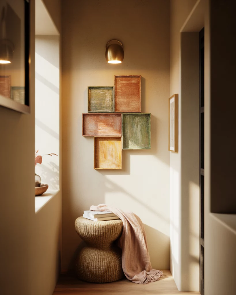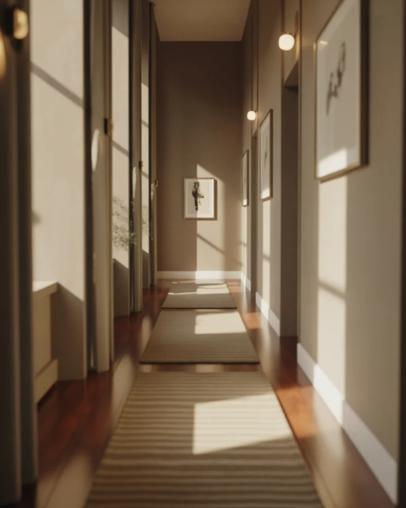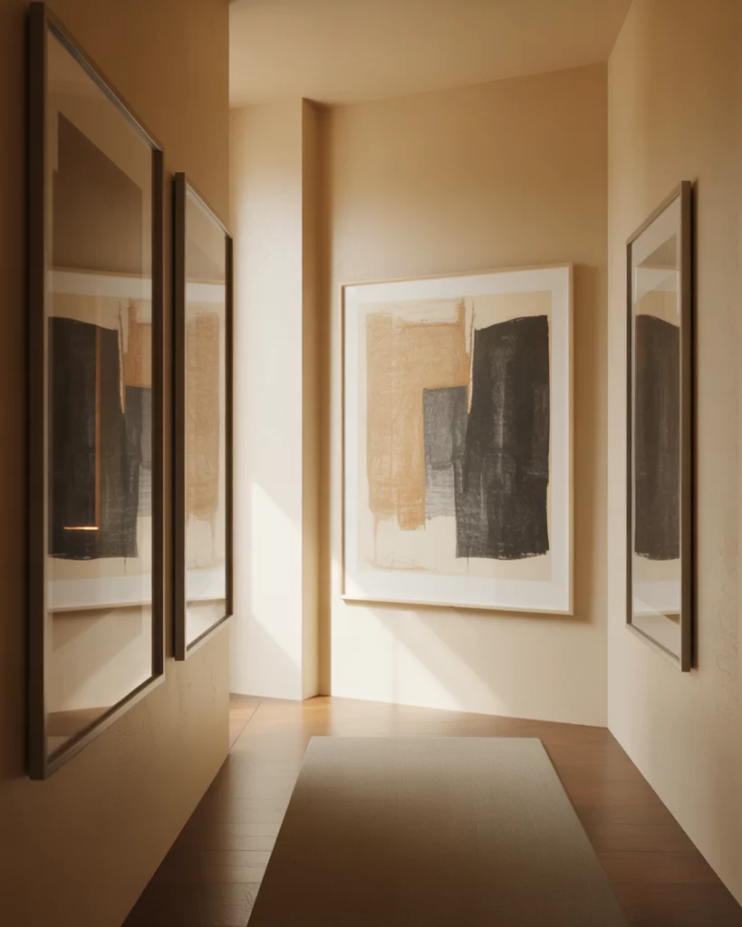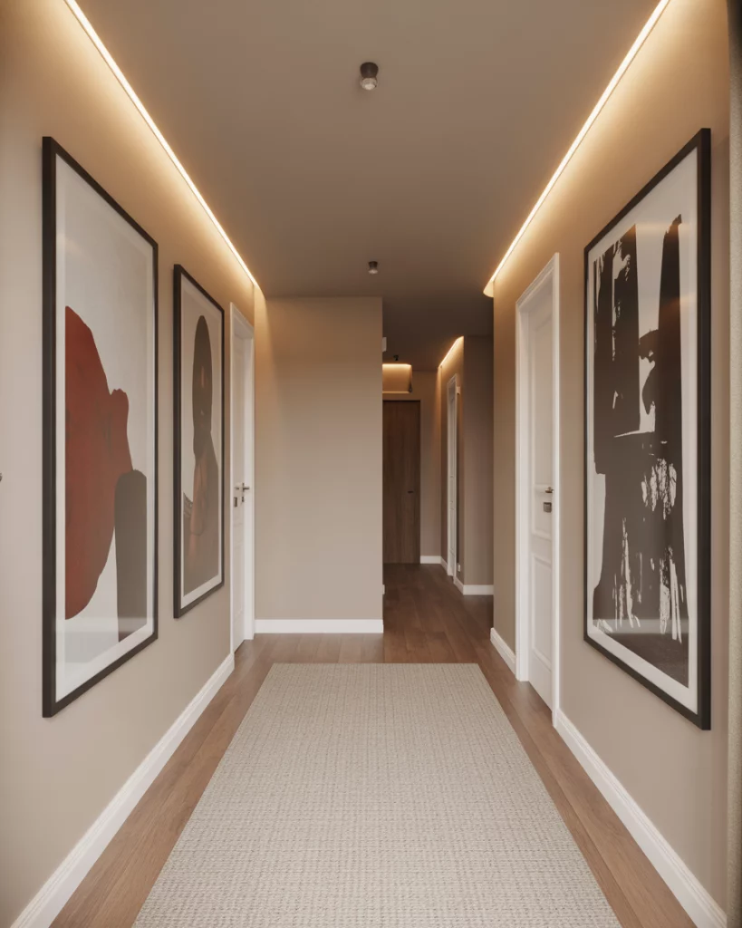 Bold artwork can give a hallway instant presence, especially in a modern apartment. A curated row of framed graphics or abstract pieces helps guide the eye through a Narrow space, letting the Entrance feel elevated with minimal effort. Stick to consistent frame styles—this keeps the corridor cohesive even if the artwork varies in tone or scale.