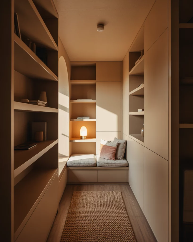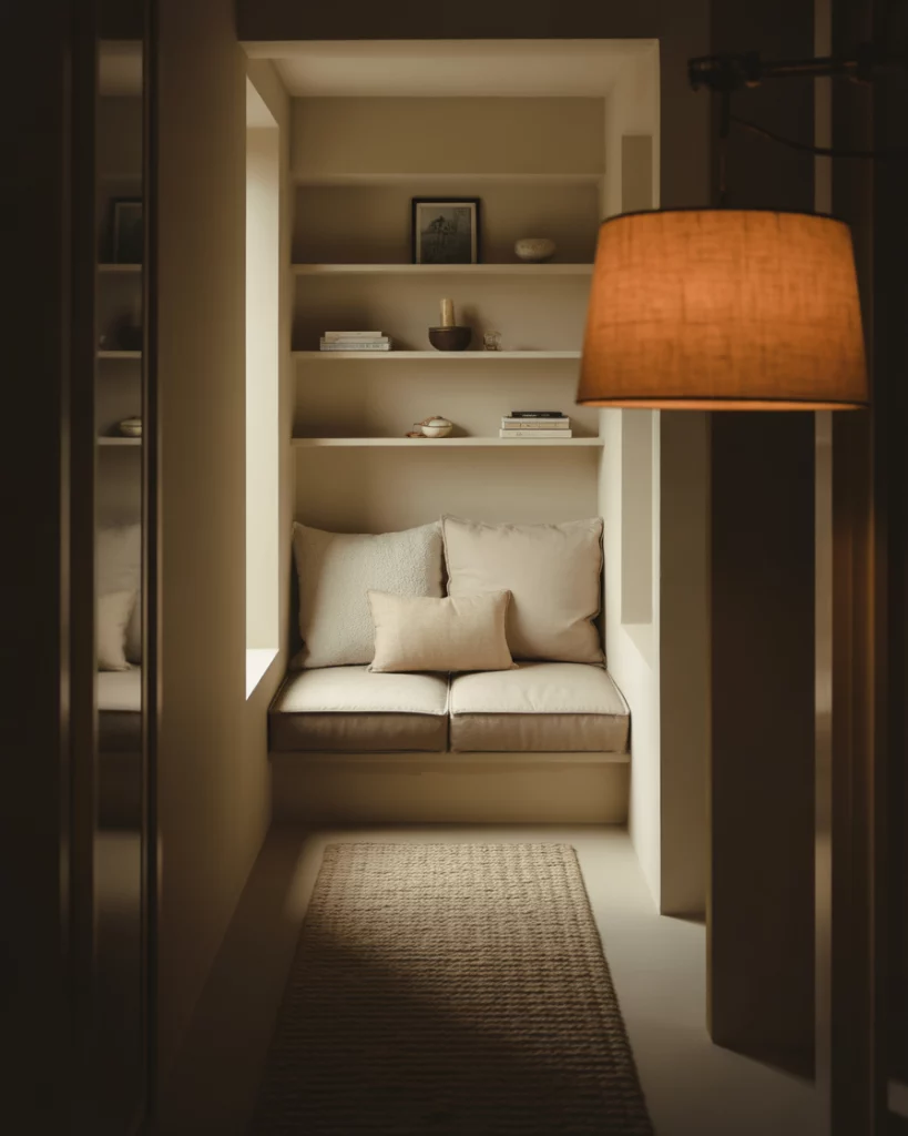 A shallow turn or Short recess can become a cozy reading nook with a bench, especially in an Upstairs landing. Add simple shelving, warm colours, and a compact table lamp to transform a modest corner into a peaceful retreat. One reader shared that this tiny hall bench became the most-used seat in the house—perfect for sipping coffee while waiting on laundry cycles.