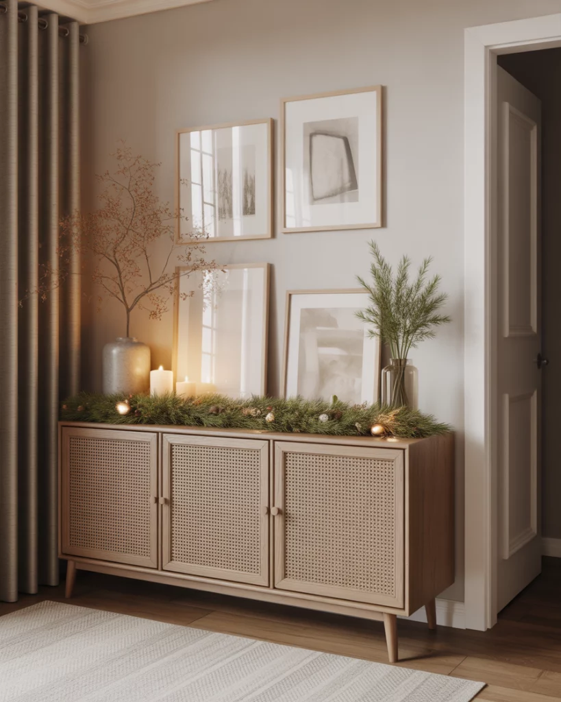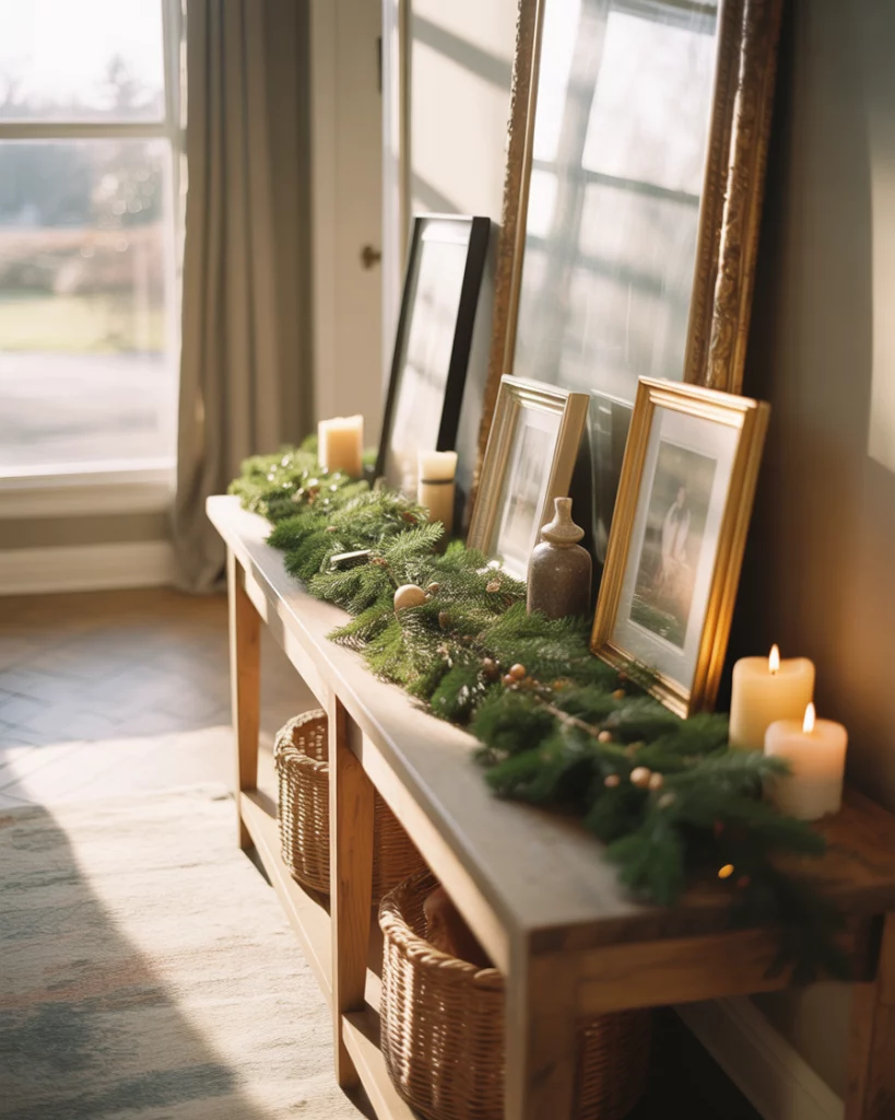 A slim console by the Entrance becomes a styling playground throughout the year. Whether adding Christmas greenery, spring blooms, or colours that match your interior, it offers a warm welcome in narrow front halls. Updating only the tabletop décor can refresh the whole hallway for under $40—no structural changes required.