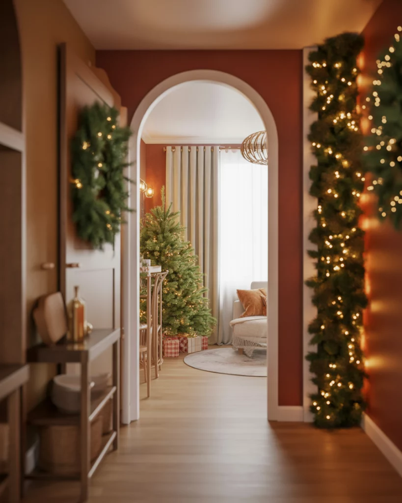 For festive enthusiasts, a sweet hint of Gingerbread house charm can warm a winter hall. Use creamy trims, soft brown tones, and playful detailing. Even a Christmas garland or small upstairs landing vignette keeps the theme subtle but charming in modern Homes. A reader once shared that after adding gingerbread-style trim, guests kept asking if she’d renovated—the effect came from paint alone.