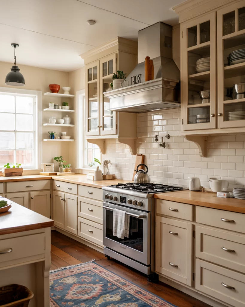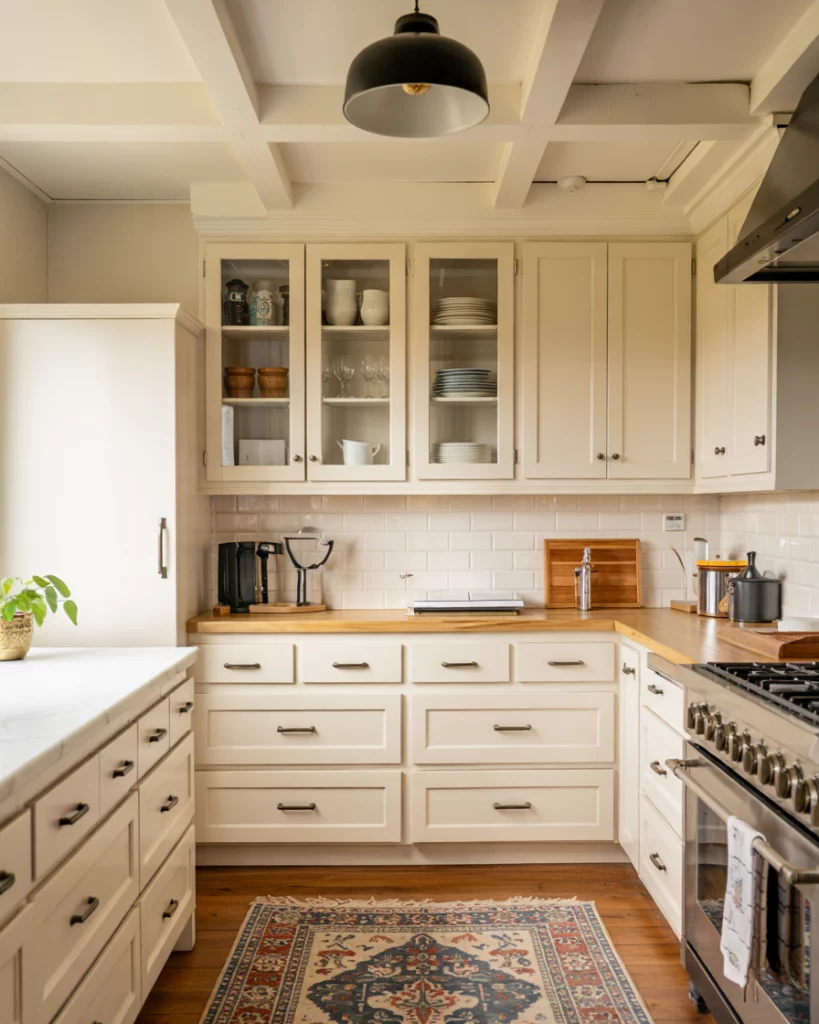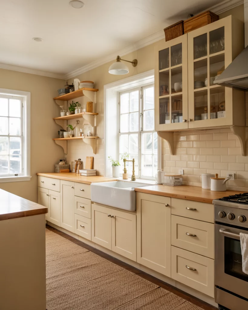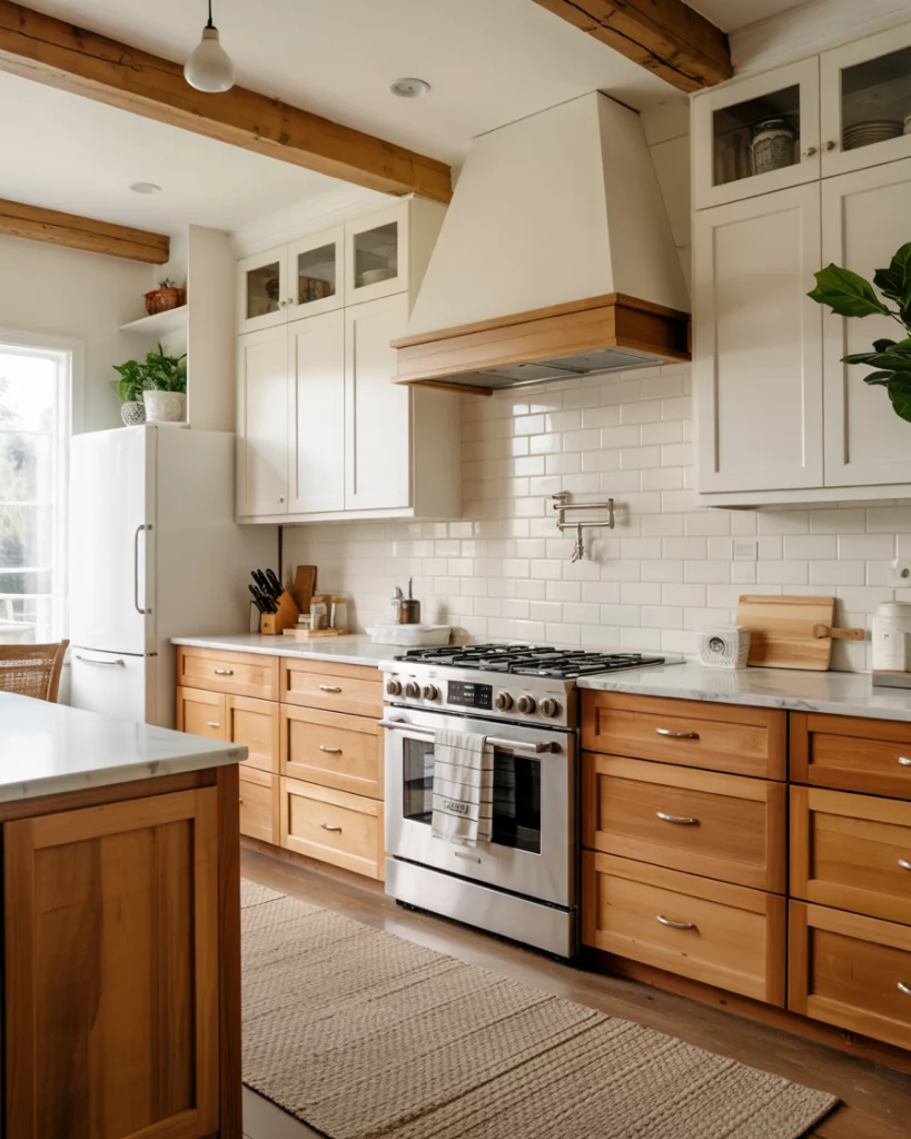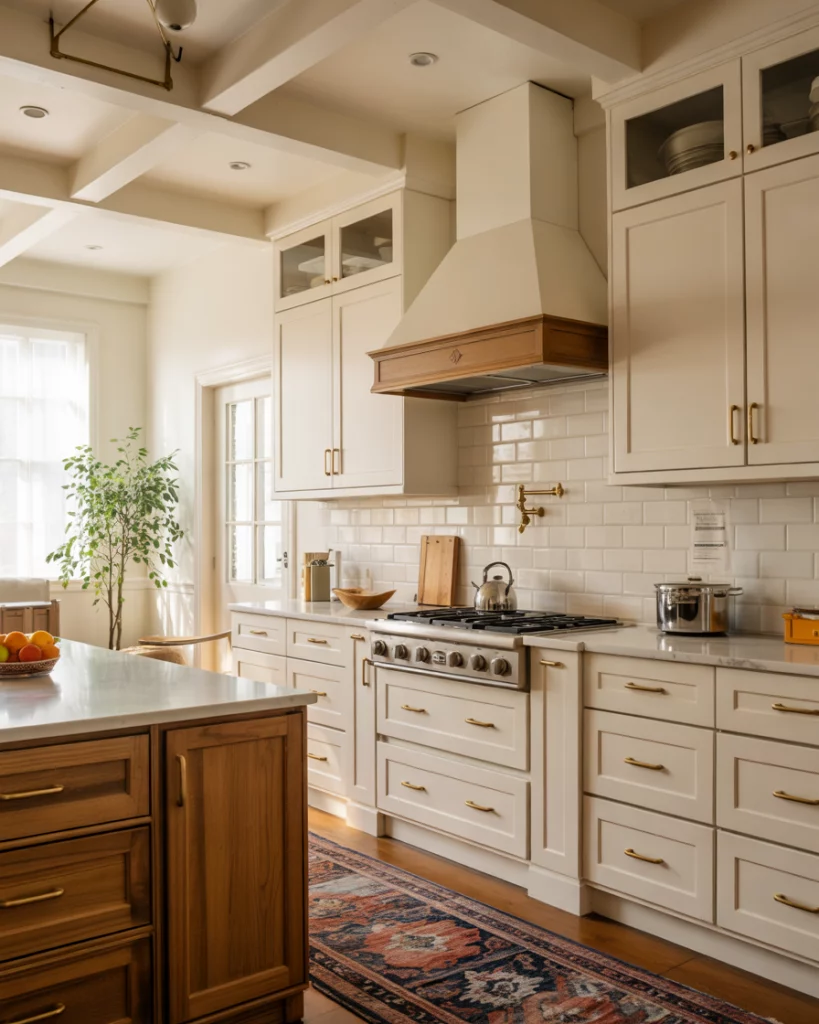 Taking cues from the enduring farmhouse aesthetic—but modernizing it—is another idea. Think painted shaker-style doors, apron-sink integrations, and rustic wood accents married with clean lines. In a weekend getaway cottage I visited, the designer used white uppers, stained wood lowers, and open beam details—it felt cozy yet deliberately modern. For 2026, the farmhouse look evolves to feel less theme-park country and more elevated and design-centric.