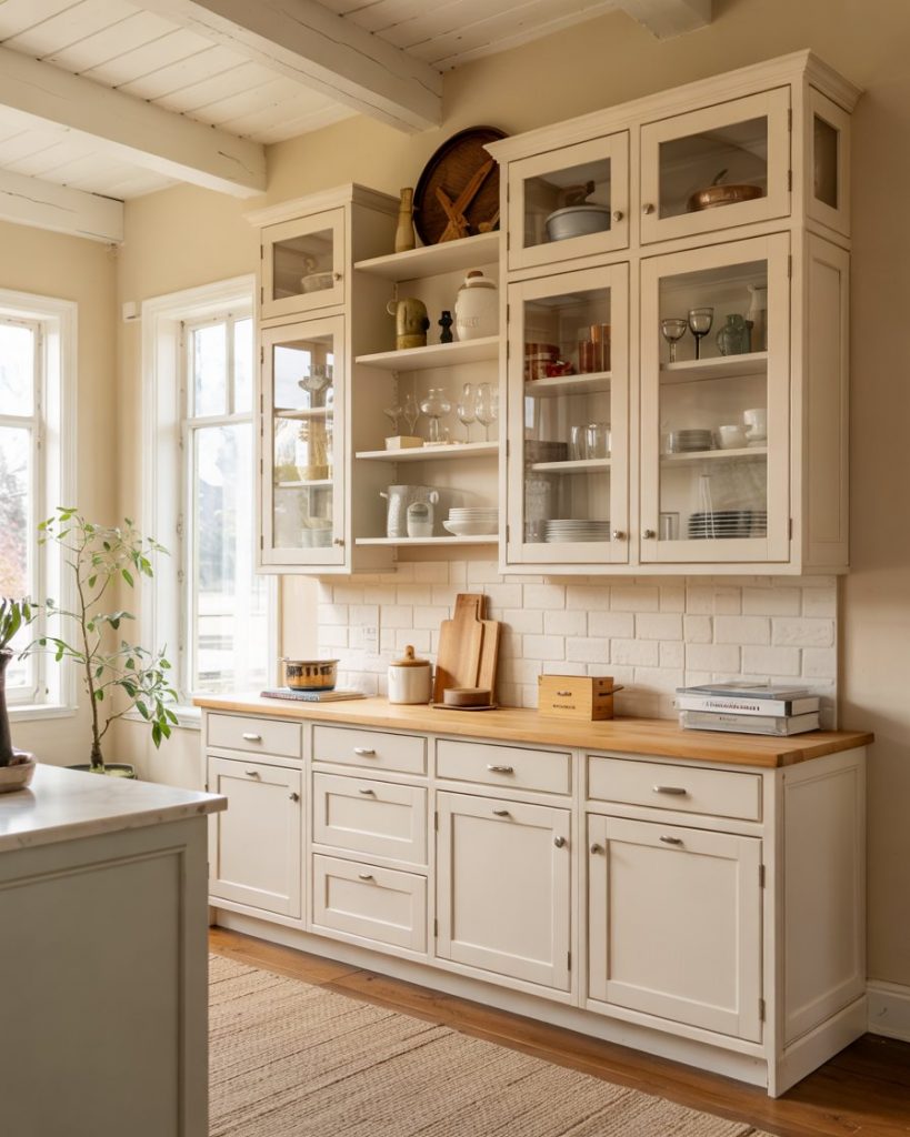 This idea emphasizes tall cabinetry—running floor-to-ceiling or with extended uppers—to optimize vertical space and deliver serious storage. Ideal for busy homes or those with collectibles, it also supports cleaner layout flow by eliminating gaps above cabinets. In my own kitchen redesign, adding tall pantry cabinets freed up counter clutter and made daily cooking feel smoother. It’s especially useful in smaller footprints where every inch counts.