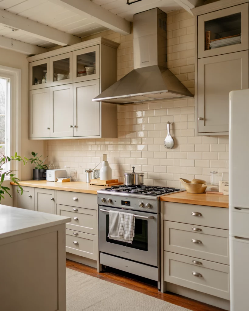 The once-forgotten space above cabinets is being rediscovered in 2026 for creative expression. Decorating above with plants, pottery, or vintage baskets adds height and personality, especially in a farmhouse or transitional modern kitchen. I saw one family place reclaimed wood crates under the ceiling line for a cozy, collected look—it made the space feel lived-in and unique. It’s an easy update that adds warmth without renovation.