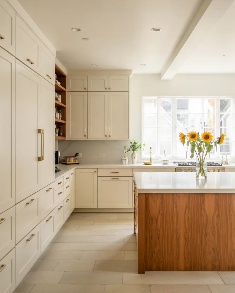 Classic but reimagined, this idea uses white cabinetry—often on the main run or the upper section—then adds warmth via wood or brass details. The white provides a light, airy backdrop, ideal for small spaces or small kitchen areas, while the warmth prevents the space from feeling sterile. I once helped a newlywed couple pick cabinets for their 800 sq ft condo; choosing a soft white base with oak lower doors made the kitchen feel larger and more inviting. This style remains timeless in a 2026 remodel.