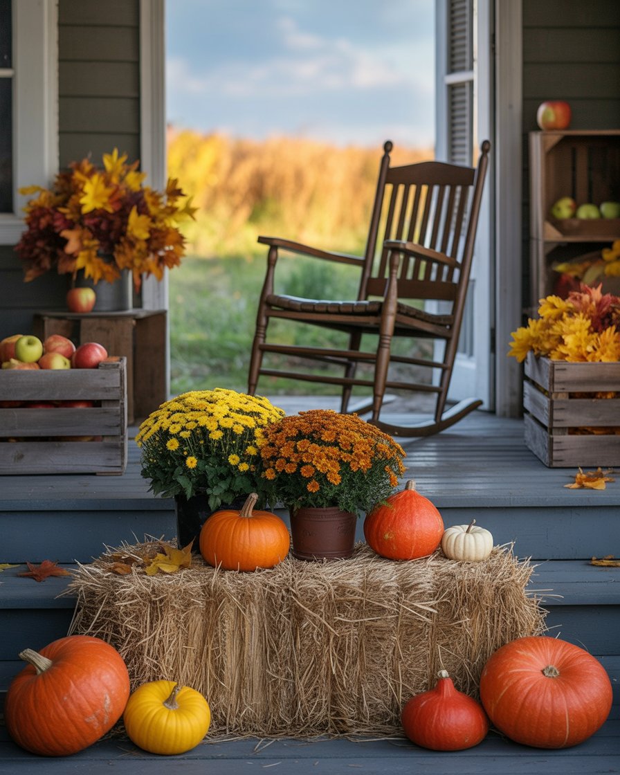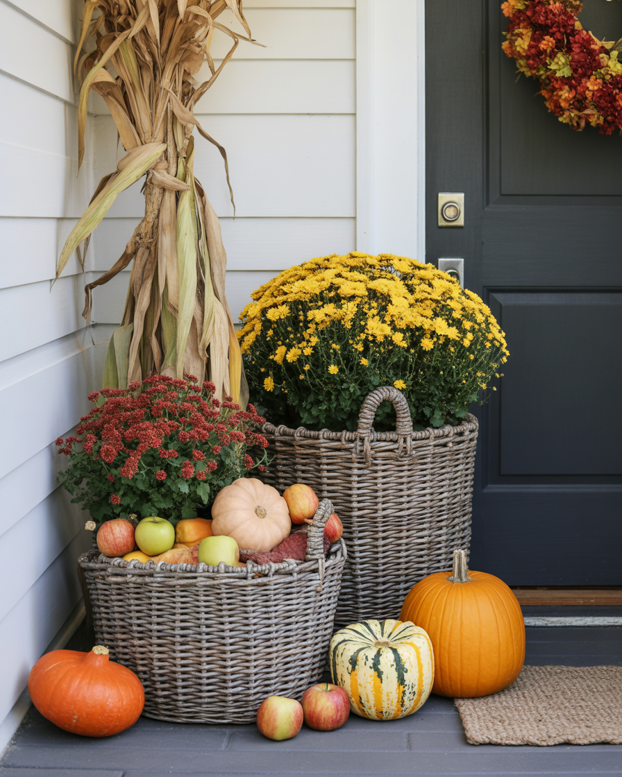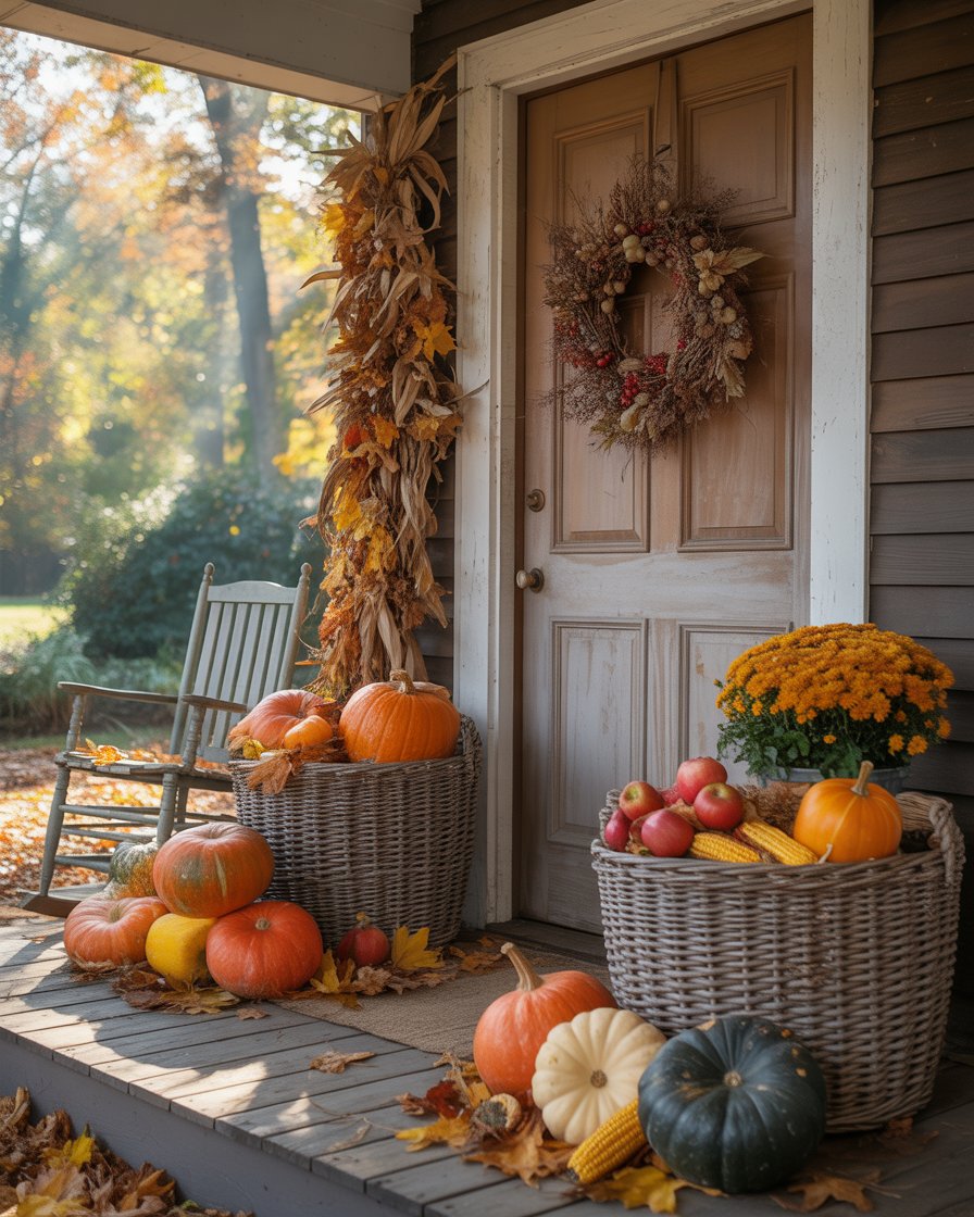 18. Autumn Harvest-Themed Porch with Baskets