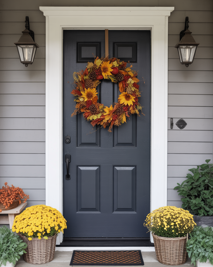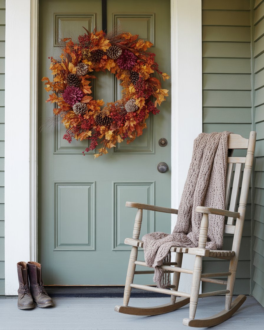 11. Charming Front Porch with Autumn Wreaths