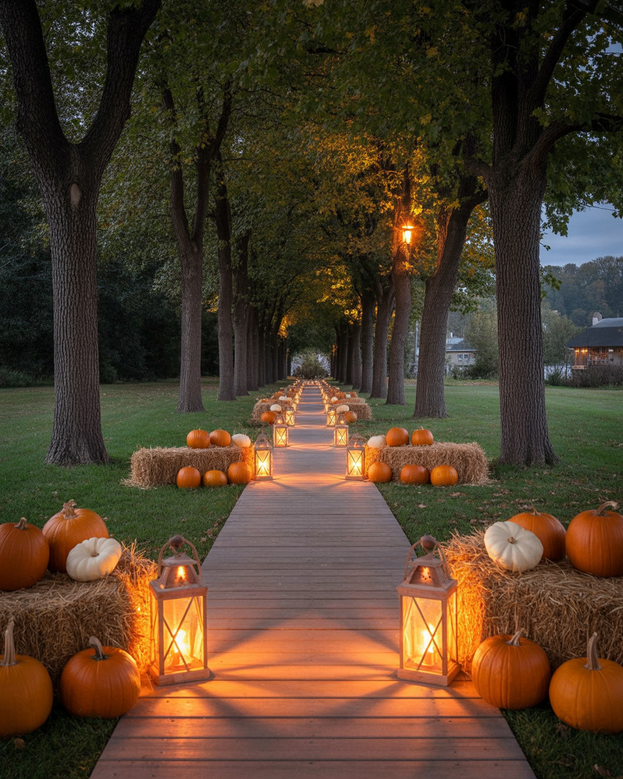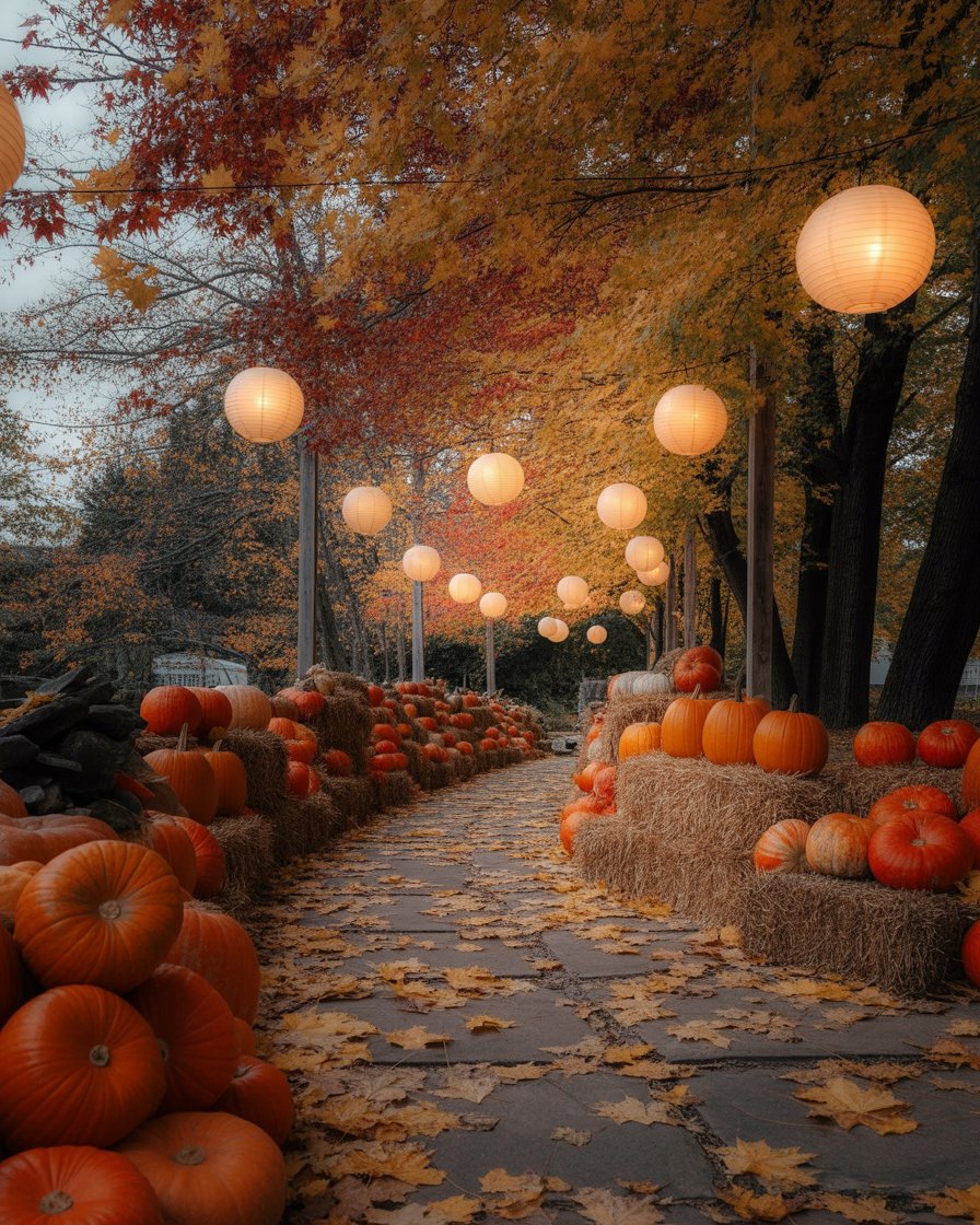 12. Autumn Pathway Lined with Lanterns and Pumpkins