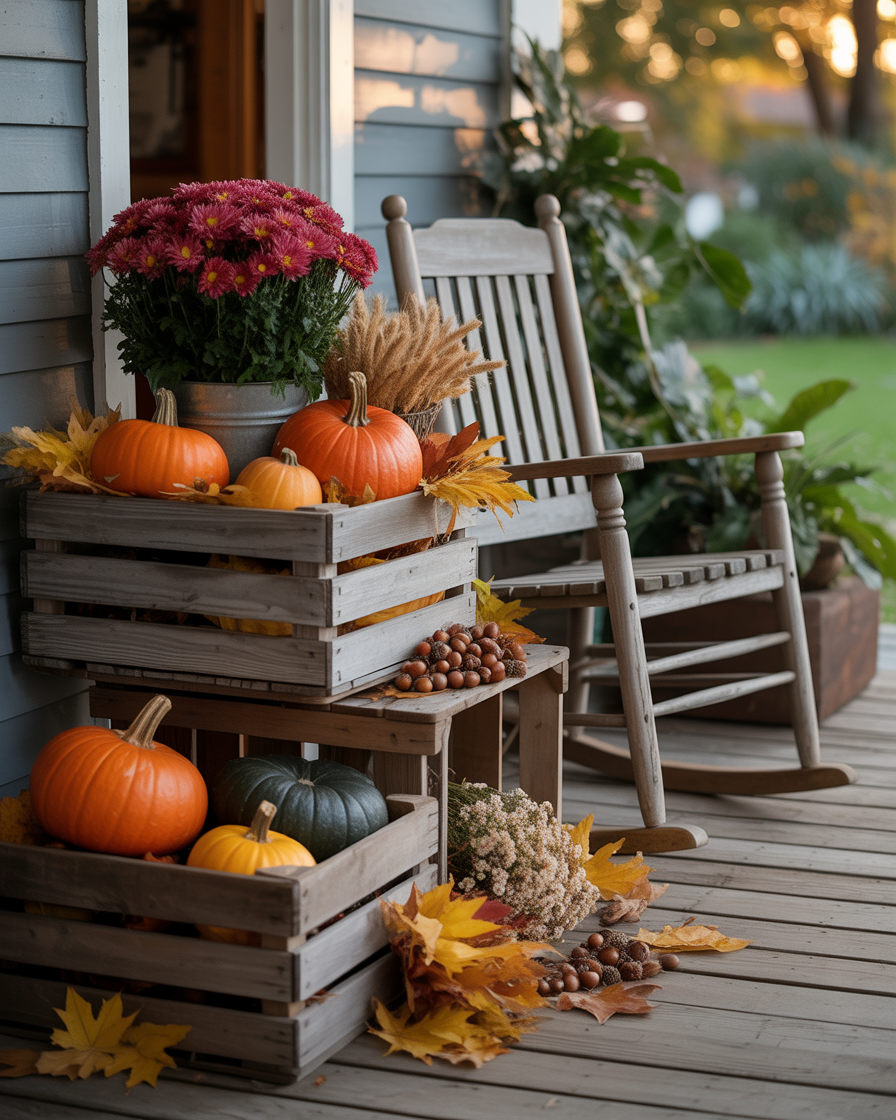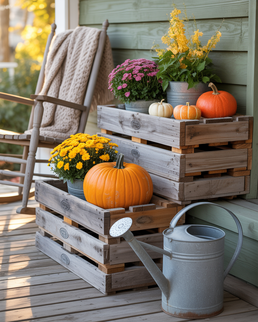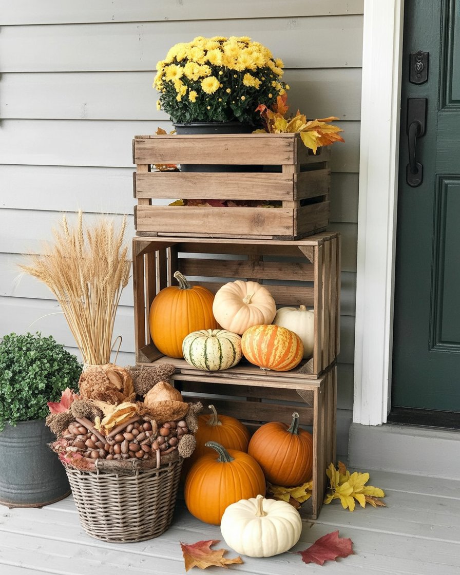13. Vintage Wooden Crates with Fall Décor