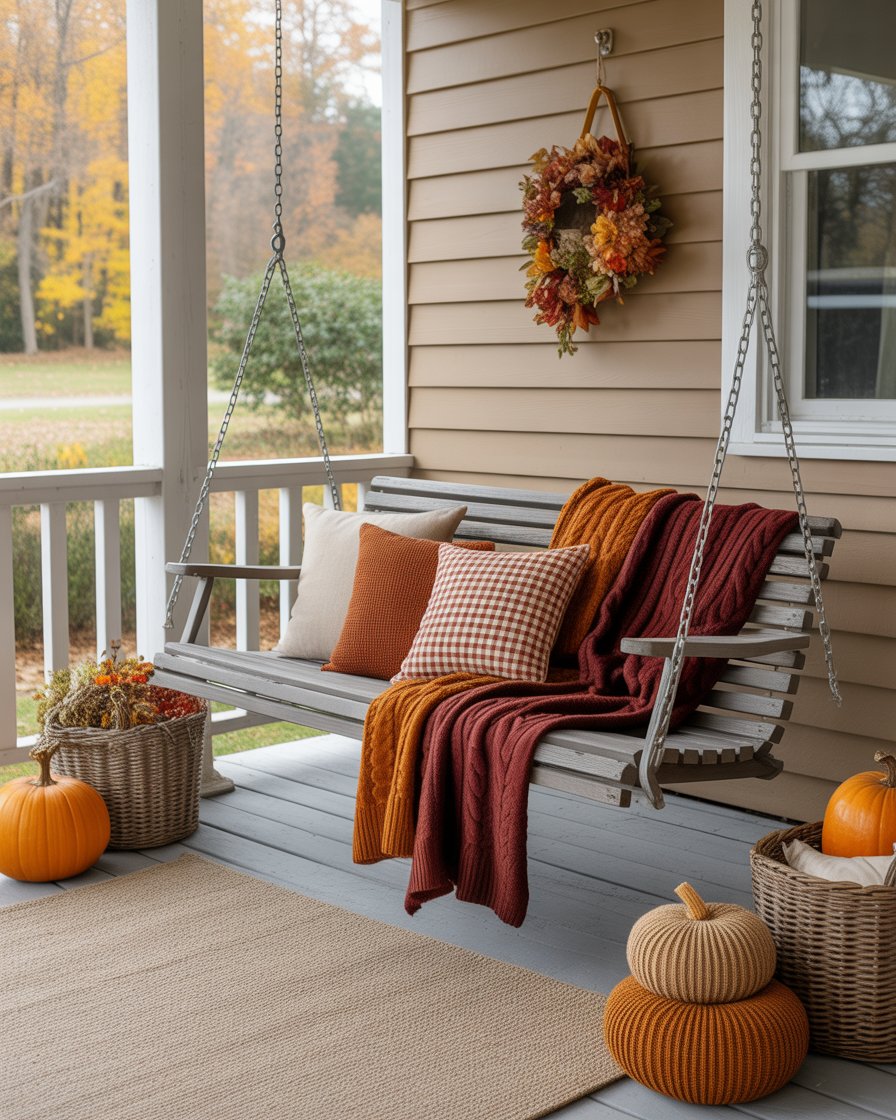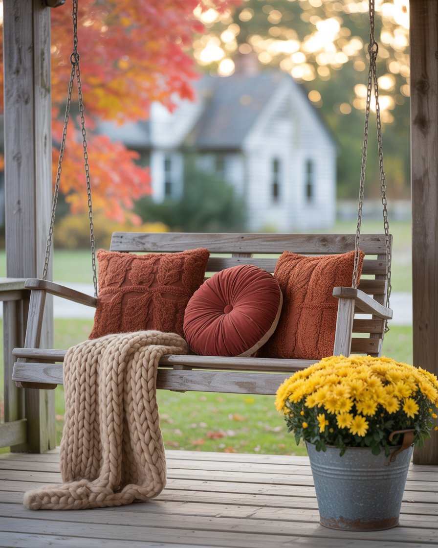 14. Cozy Swing with Fall Pillows and Throws