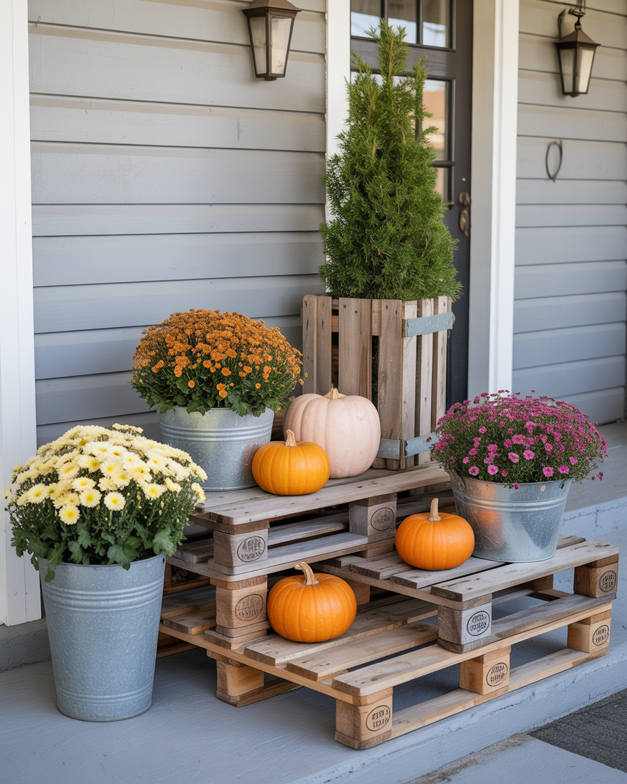 15. Wooden Pallet Planters with Seasonal Blooms
