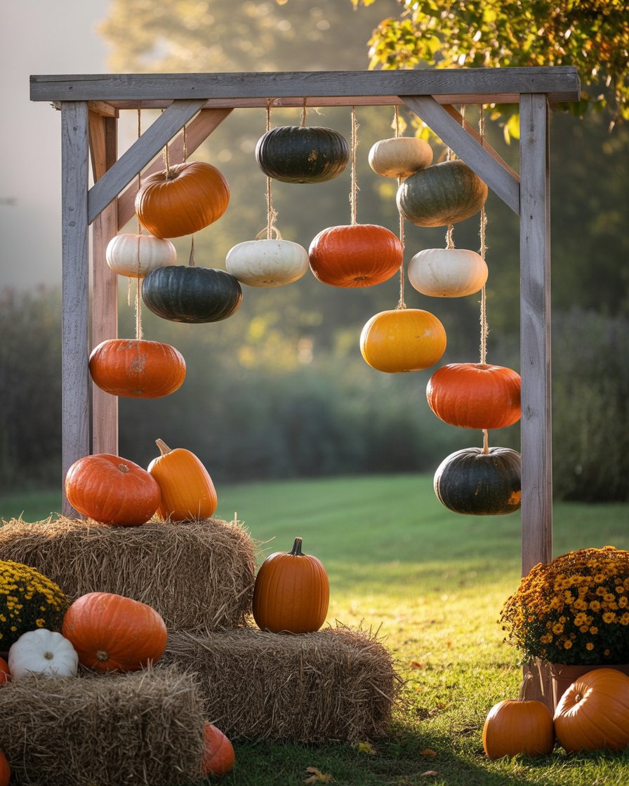 19. Hanging Pumpkin and Gourd Display