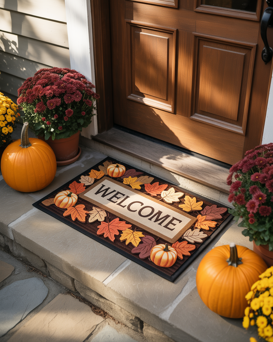 20. Autumn-Themed Doormat with Fall Leaves