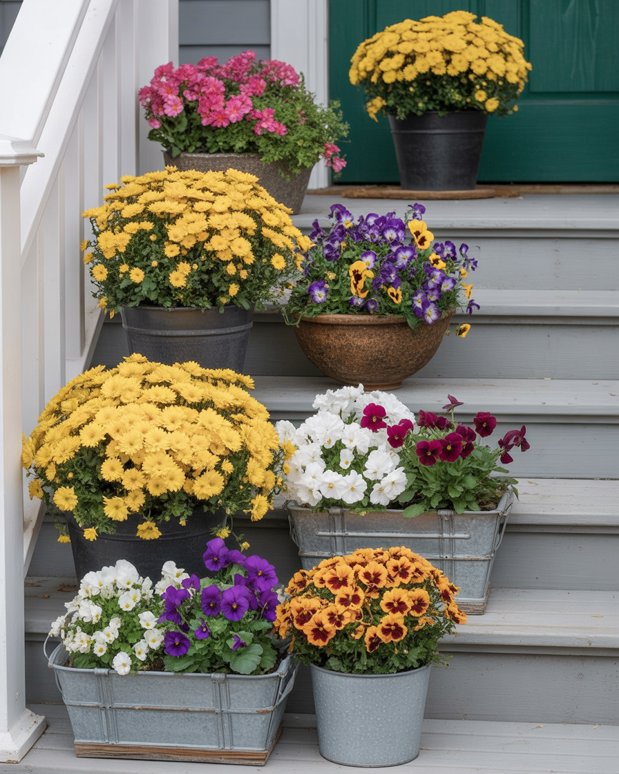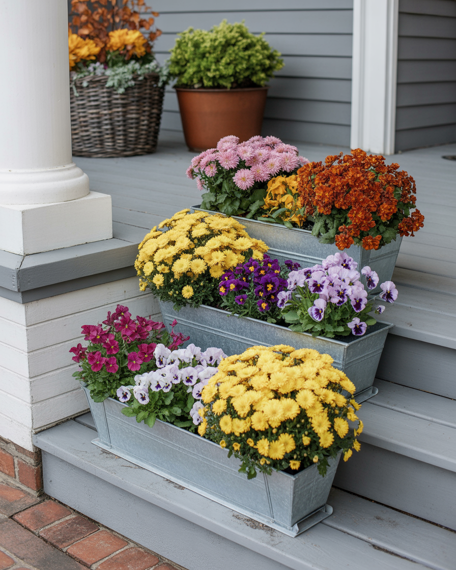 23. Colorful Fall Planters with Seasonal Flowers