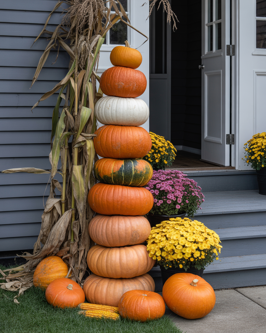 7. Pumpkin Tower and Stacked Decor