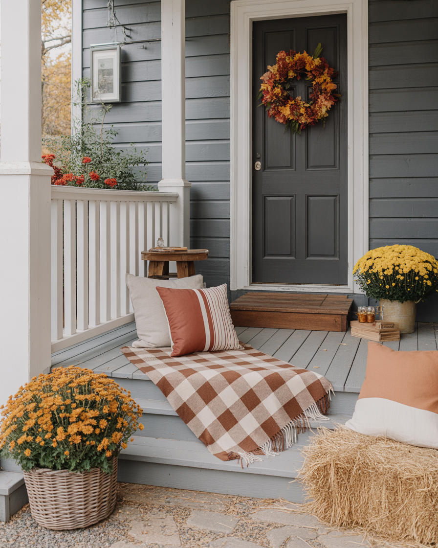 8. Cozy Porch with Plaid and Blankets