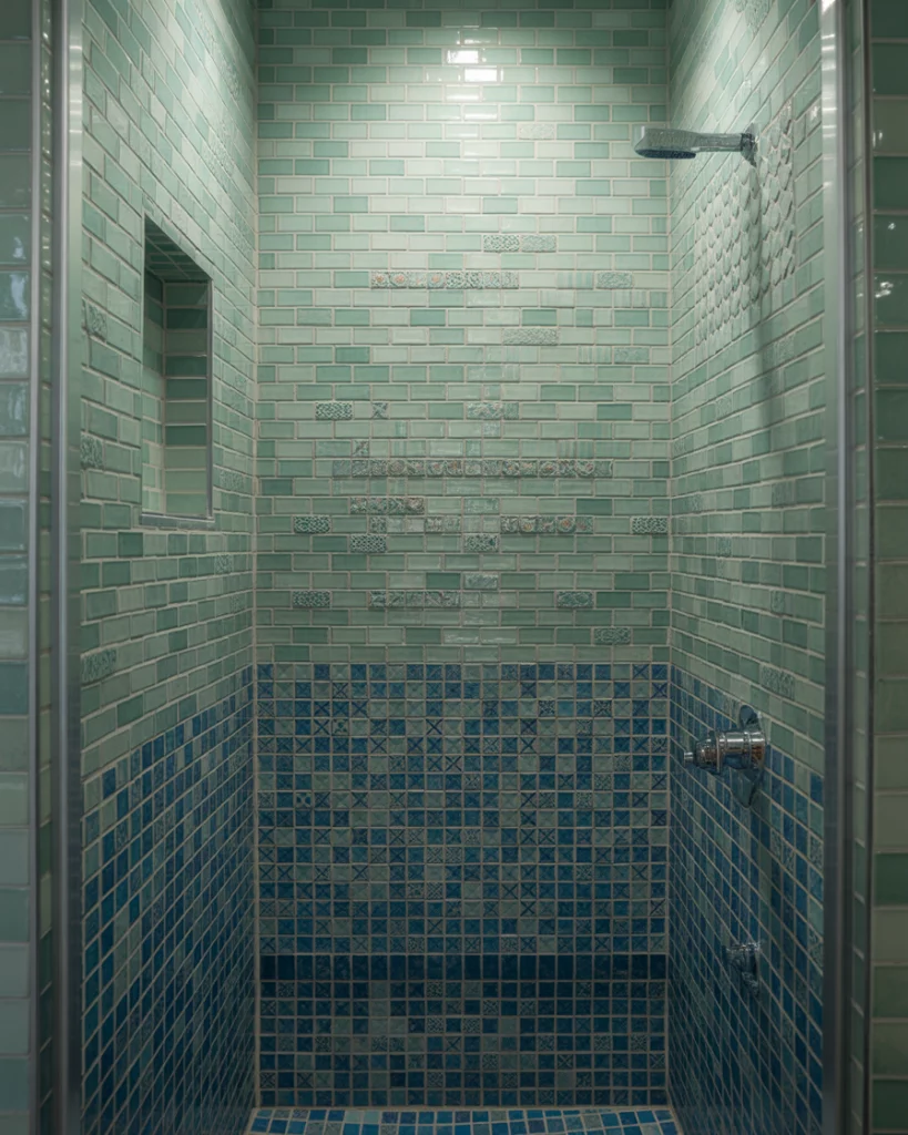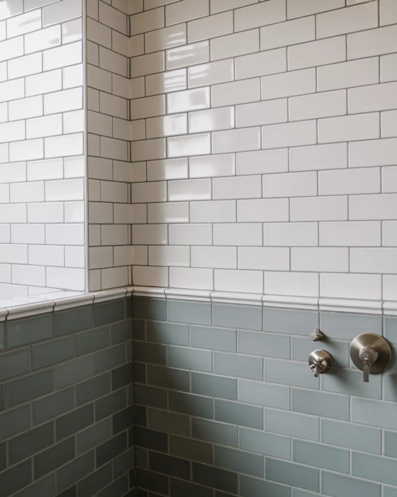 Blue subway tile in rich navy or cerulean brings depth, whether you’re aiming for coastal flair or classic sophistication. It pairs beautifully with crisp white or warm beige surroundings. Use it in a walk in or with tub setting, or wrap it floor to ceiling for a bold statement. Accent with brass or matte black fixtures. In a timeless bathroom, blue acts as both a neutral and a color accent, especially in spa-like settings.