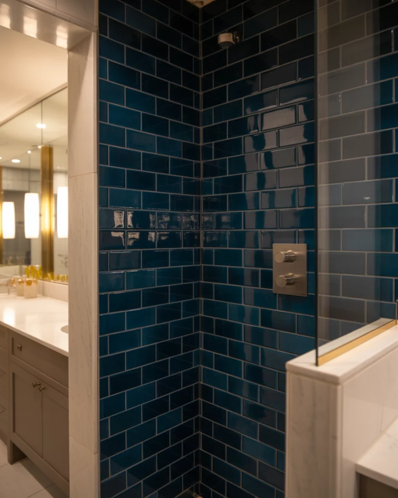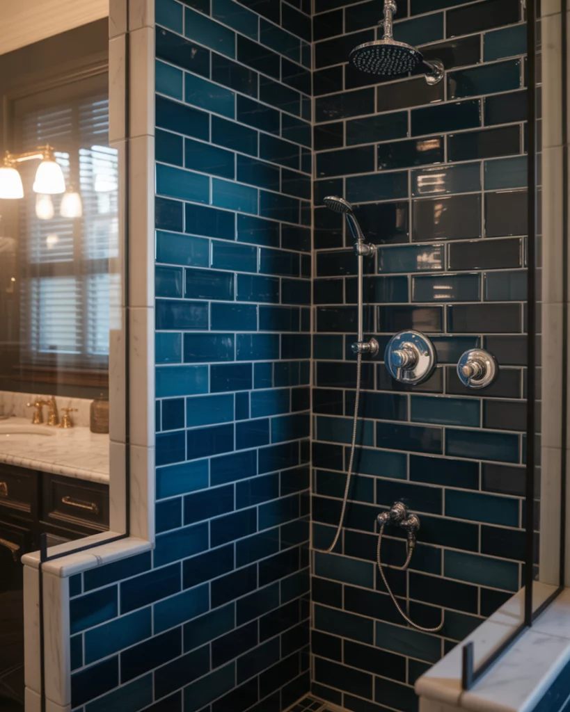 4. Deep Blue Subway Tiles for Coastal or Elegant Feel