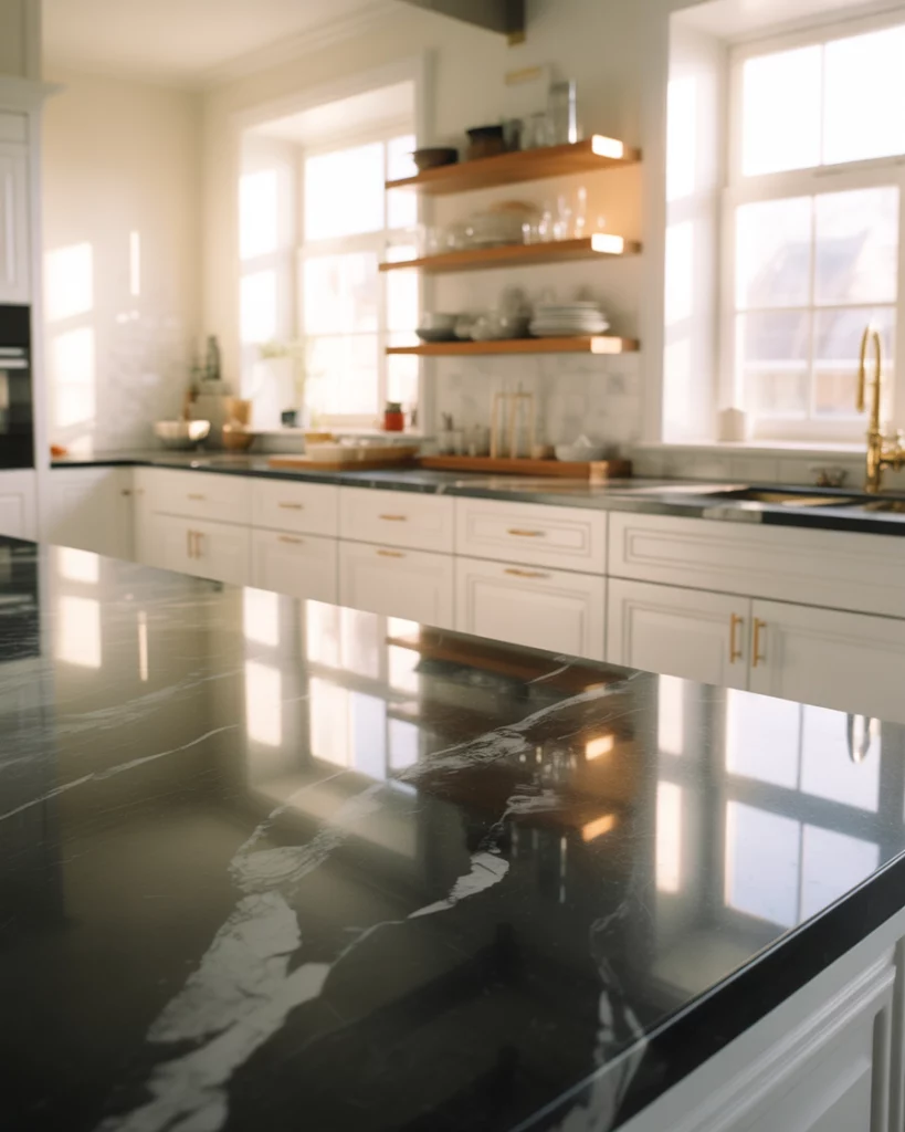 Want your kitchen, which has a monochromatic theme, to seem even posher? The use of black marble in your all-white kitchen would make all the difference. The contrast between the two would make room for other ideas, modern ideas, and nice countertop ideas. The contrast would make the space even more elite.