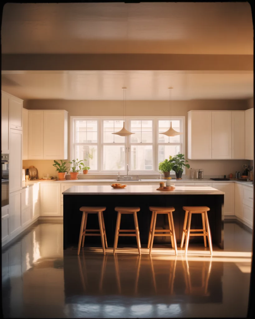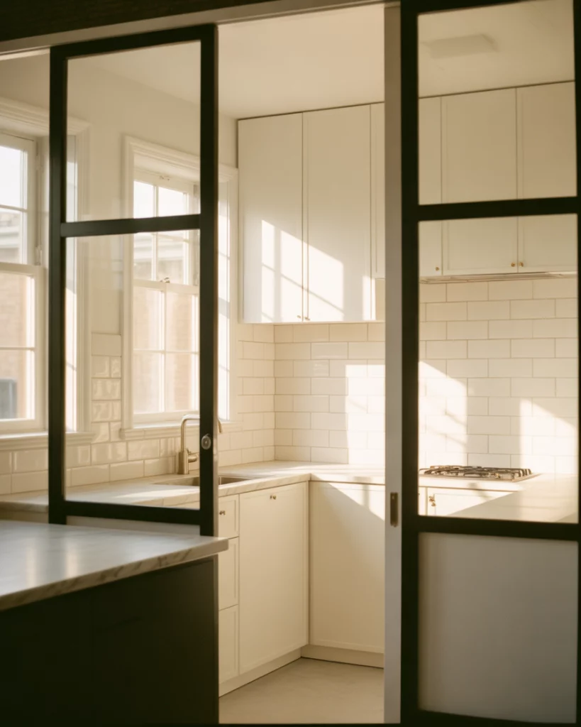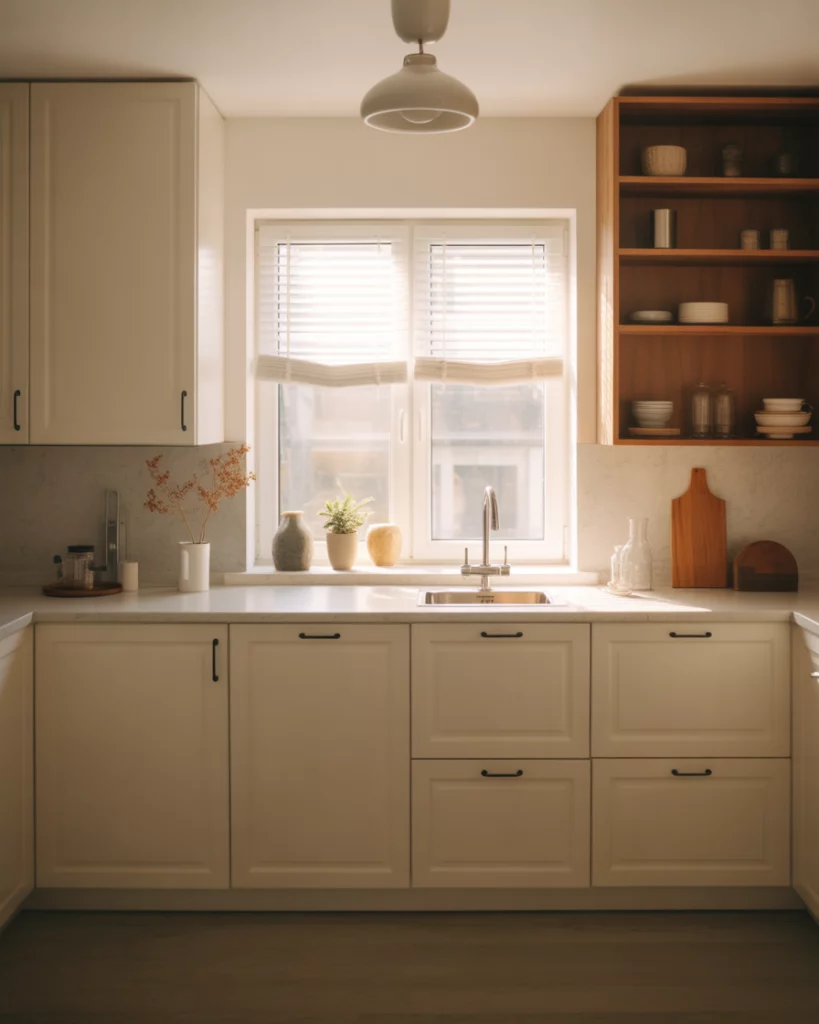 Simply frame your all-white kitchen space with ideas like black trim on the windows, doors, and other built-in furniture, and you’re all set. Design the space through interesting ideas like clean interior trends, unobtrusive backsplash ideas, and interesting accessories, and you’re in.