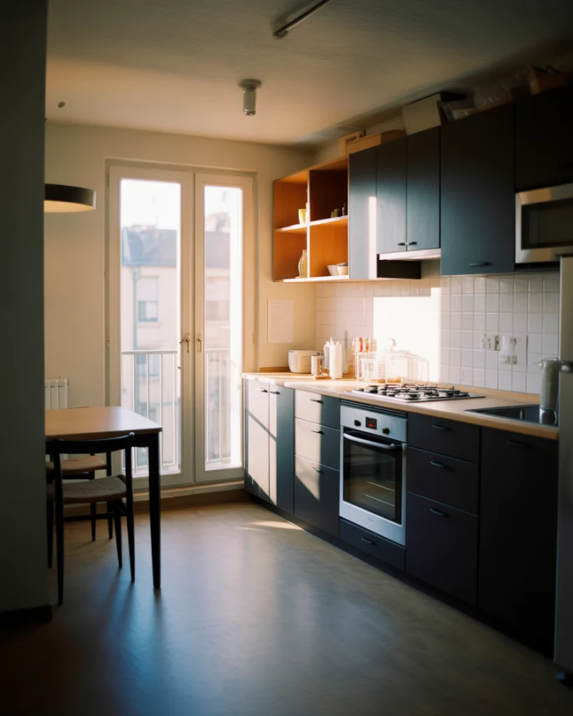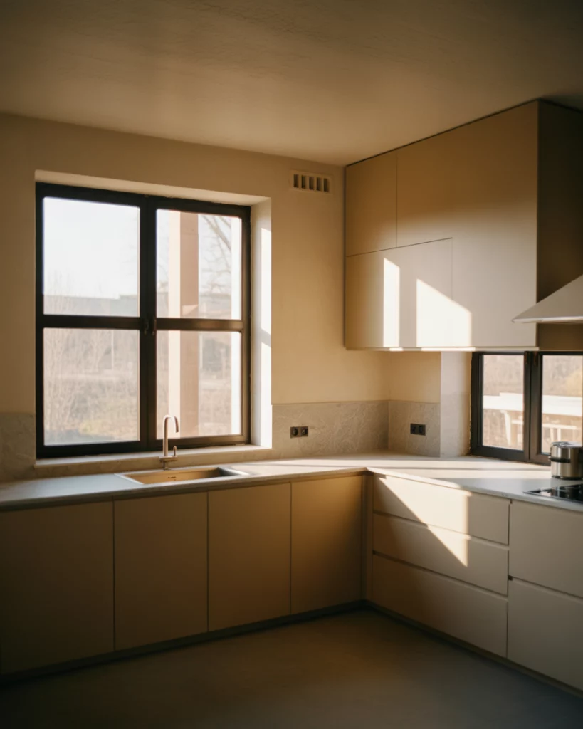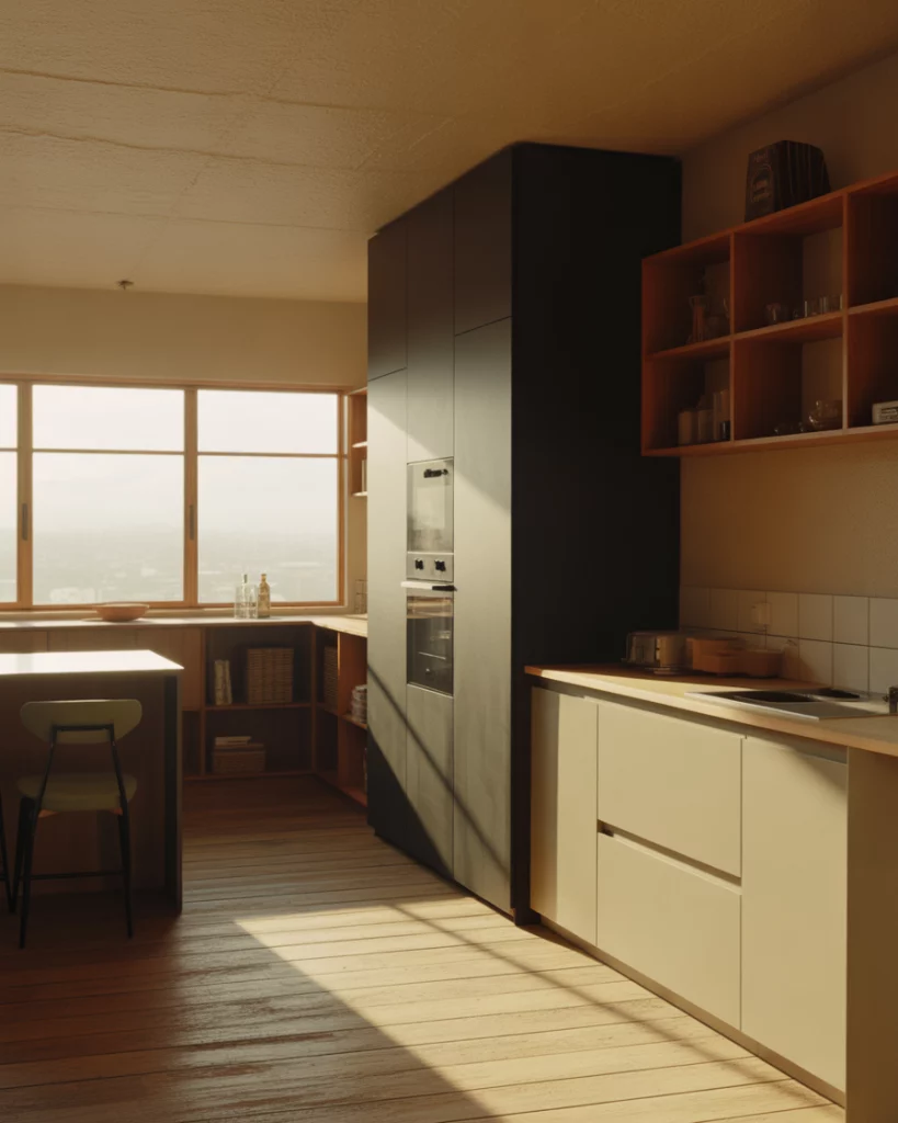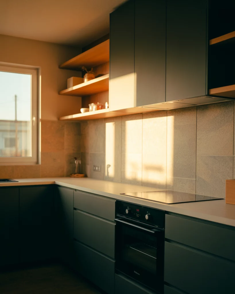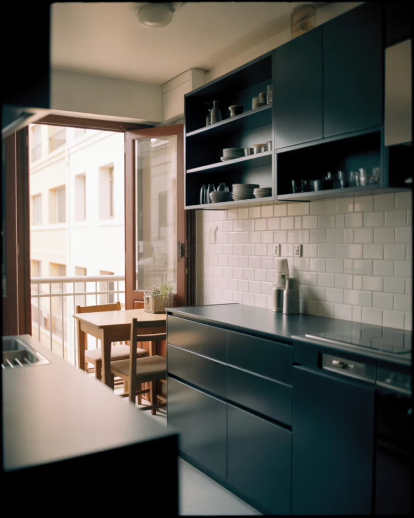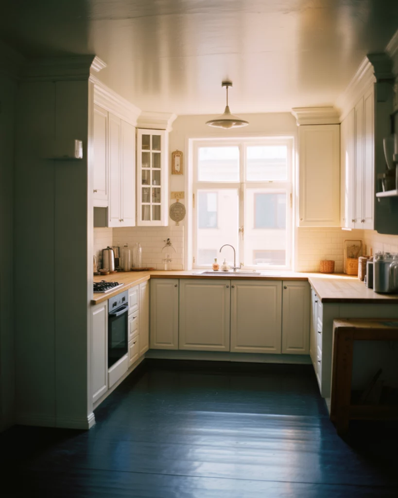 Compact kitchens in apartments always need a clean and less-detailed composition. The design would still be compact and straightforward, with added hints like apartment ideas, minimalist cabinet ideas, and other ideas in the backsplash. All in all, this would make the space highly intentional and upmarket.