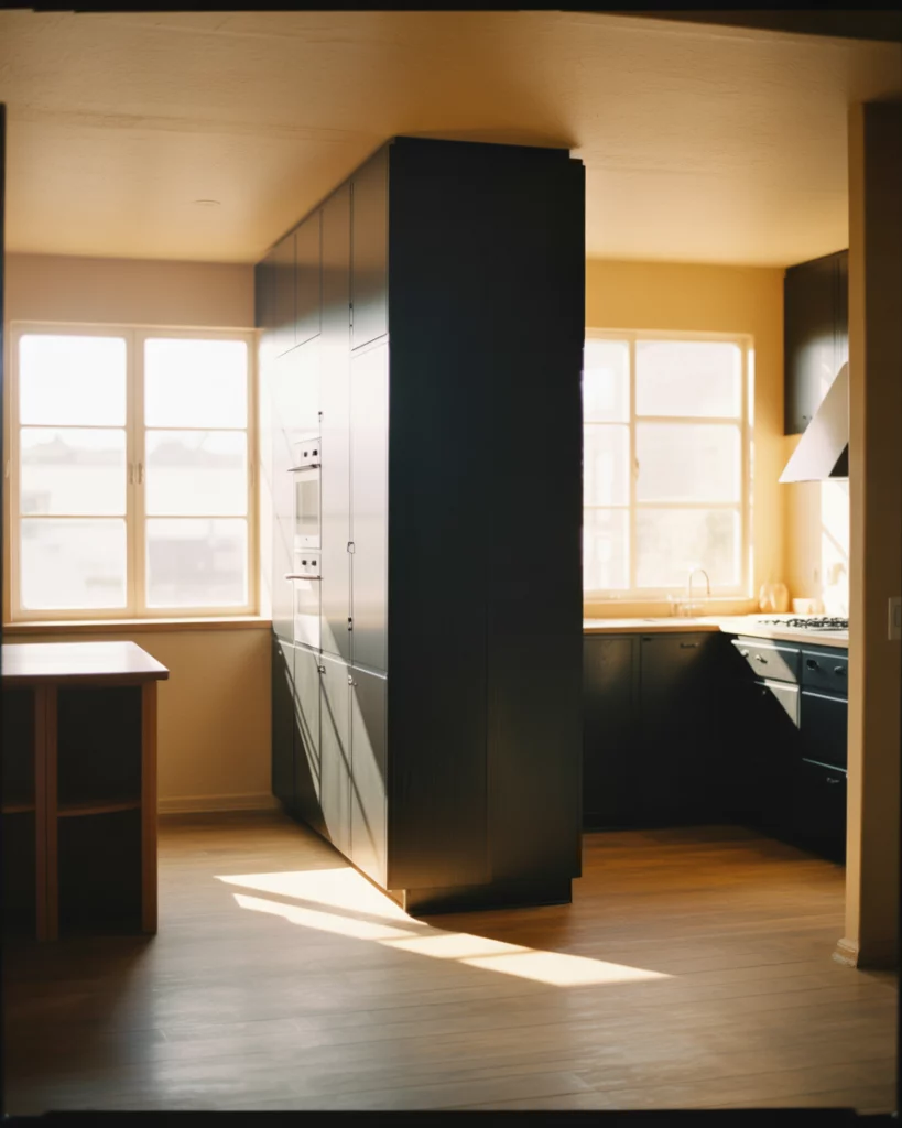 In a kitchen, the large black pantry wall can provide an excellent contrast with the lighter tones incorporated in and around the room. Team up the black pantry wall with warm décor, well-balanced flooring, and appropriate cabinet designs, helping the appliance become earthy and stunning.