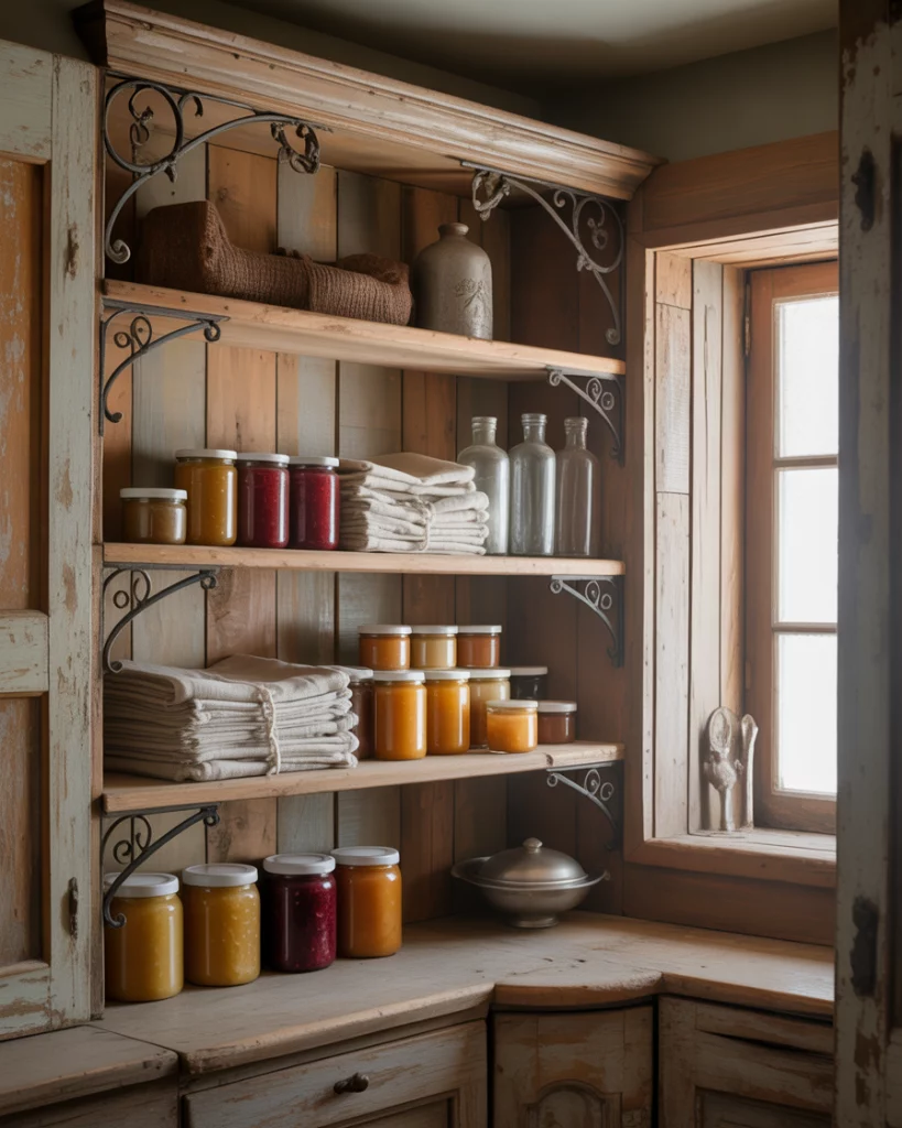 For those who love nostalgia, vintage shelving evokes charm and comfort. Distressed wood, pastel paint, and antique brackets turn a small closet or corner into a time capsule. Add classic tins and hand-labeled jars for authenticity. I remember my grandmother’s pantry smelled like cinnamon and lemon polish—simple, but unforgettable.