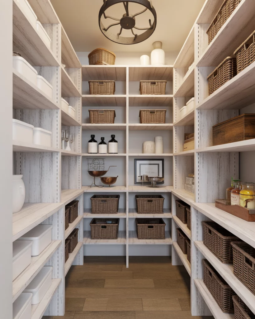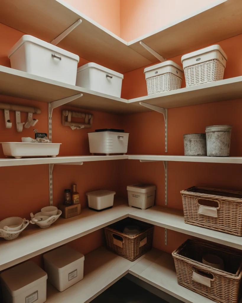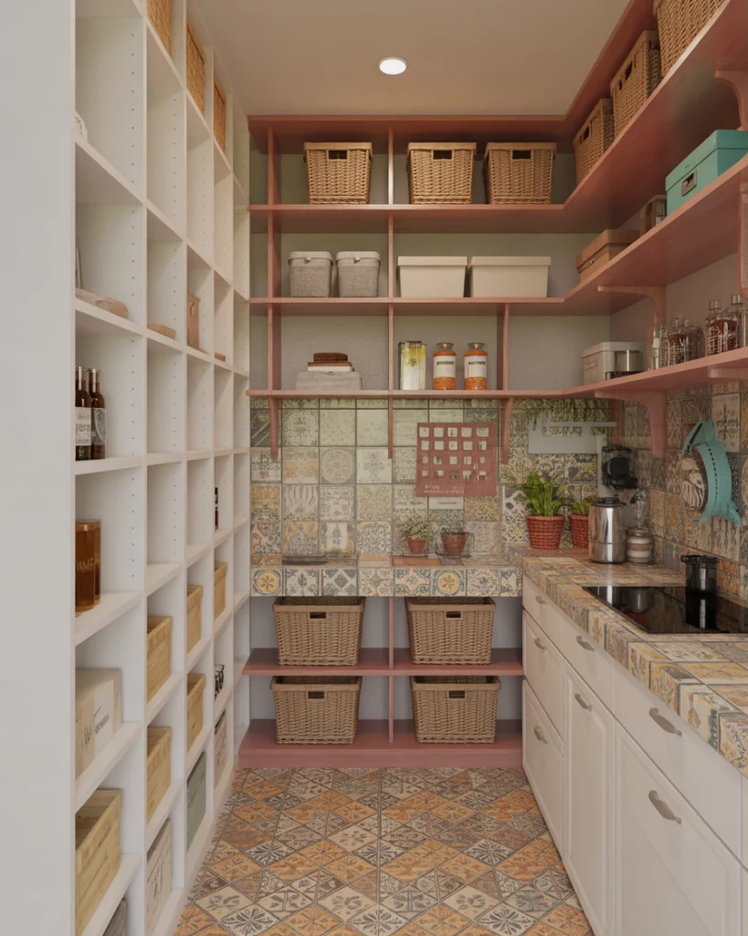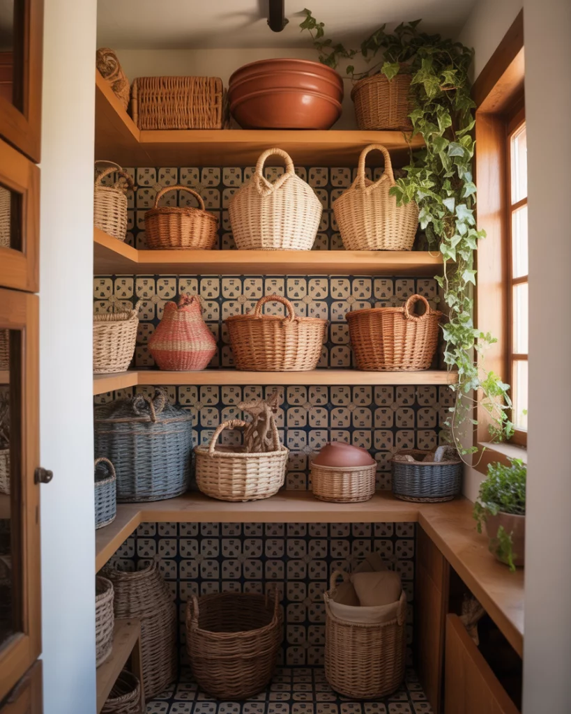 If you love personal expression, go boho with vibrant baskets, patterned tiles, and layered textures. Even a narrow walk-in or corner pantry can feel alive with color and woven bins. I once saw a pantry where the owner painted the back of each shelf a different shade—it looked joyful and uniquely hers.
