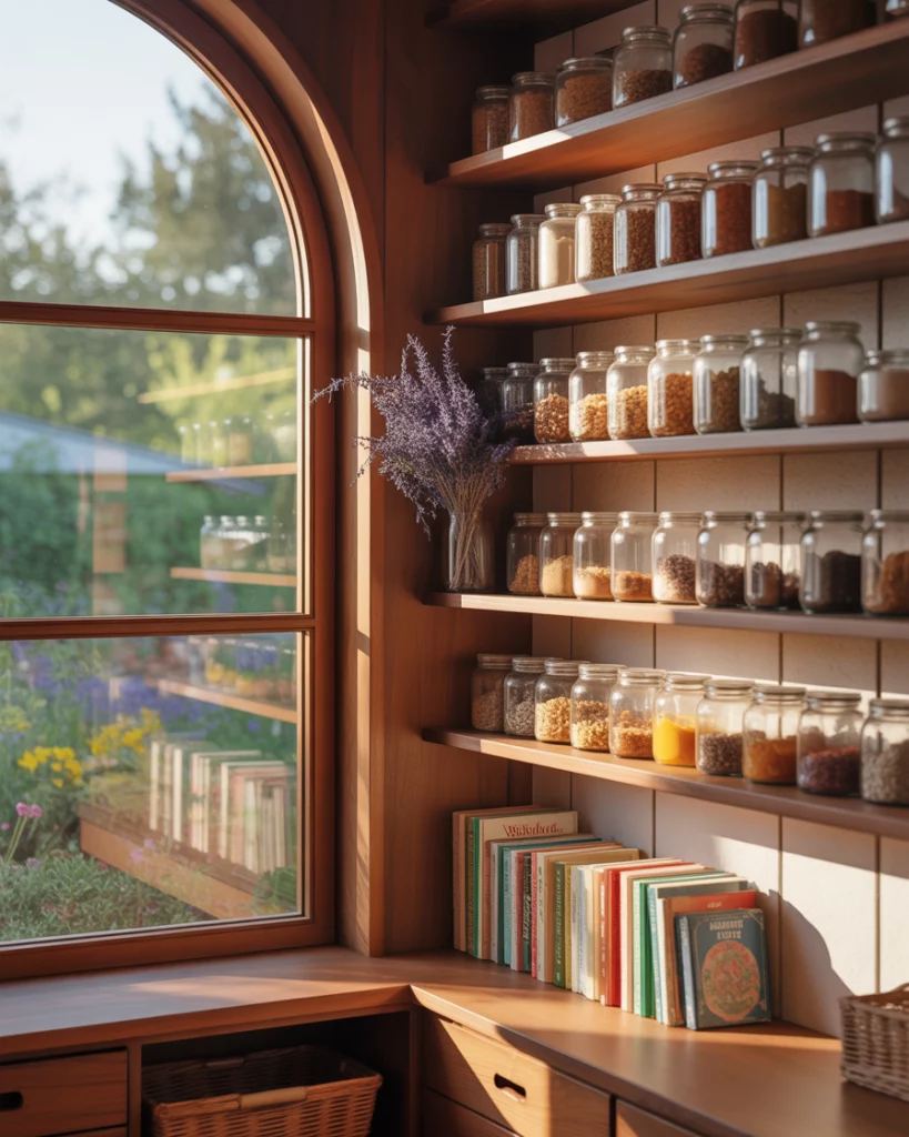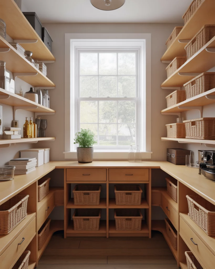 If your pantry is a closet with window, integrate shelving around that opening—e.g., frame the window with floating shelves or lower cabinet bases. Natural light makes jars glimmer and adds warmth. I once renovated a suburban home where the pantry window became a feature: we flanked it with shelves and stored cookbooks and olive oils.