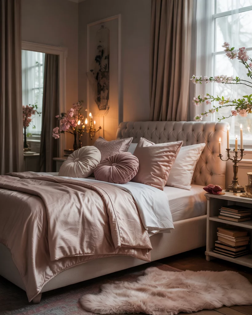 Romantic bedrooms embrace softness and subtle glamour through draped fabrics, gentle lighting, and plush textures. A blend of romantic touches with hints of luxury materials—like velvet or brushed gold—creates a serene environment perfect for unwinding. It’s a timeless look that feels indulgent without requiring a full redesign. A common mistake is leaning too heavily on pink or frills, which can make the room feel juvenile. Balancing softness with structured furniture keeps the design elevated and suitable for adult spaces.