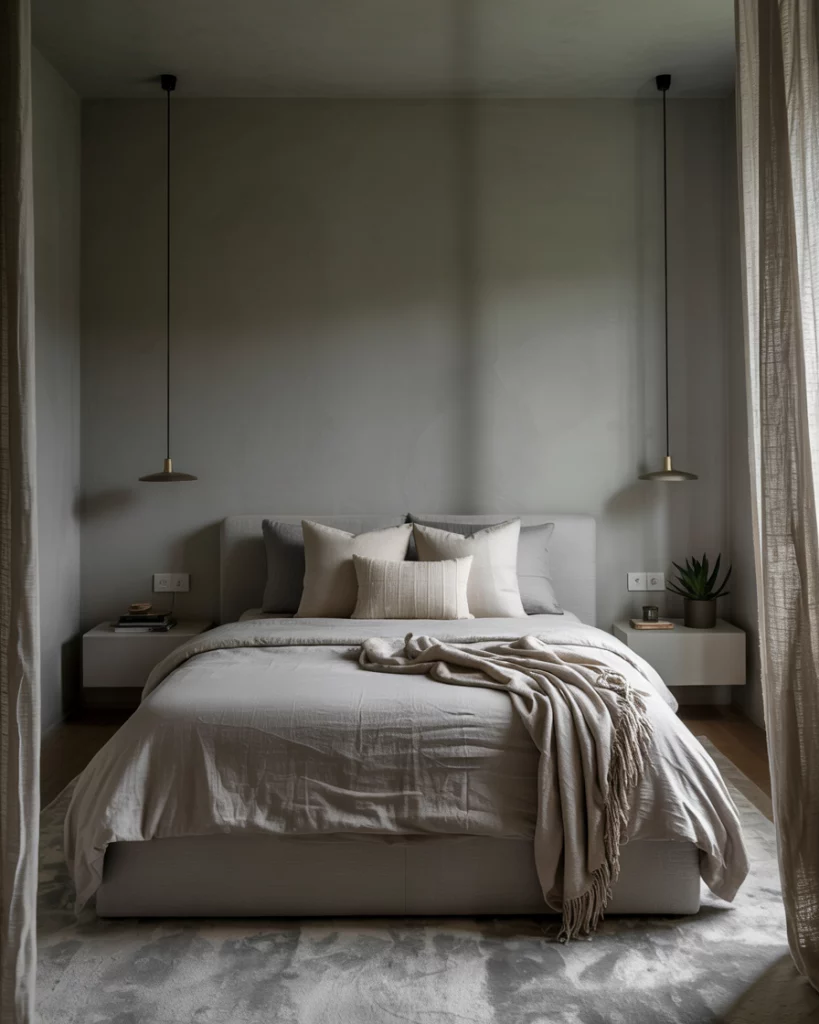 Gray remains a trusted favorite for creating a calm sleep environment. Blending layered textures with grey bedding and smooth gray walls gives the room a clean, understated presence. It’s a versatile choice that adapts to modern, transitional, or Scandinavian-inspired interiors with ease. A quick anecdote: one homeowner described switching to a gray palette as “turning down the volume” in their space. They found that the calm tones made winding down at night noticeably easier.