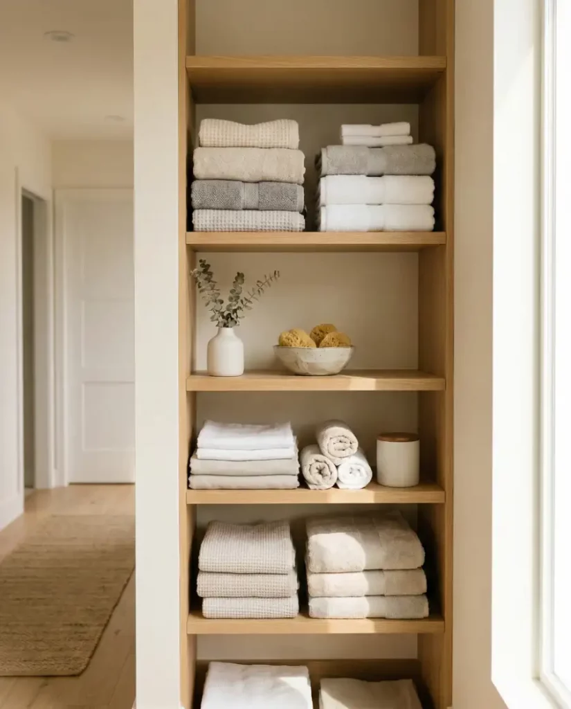 4. Minimalist Open Linen Shelves
