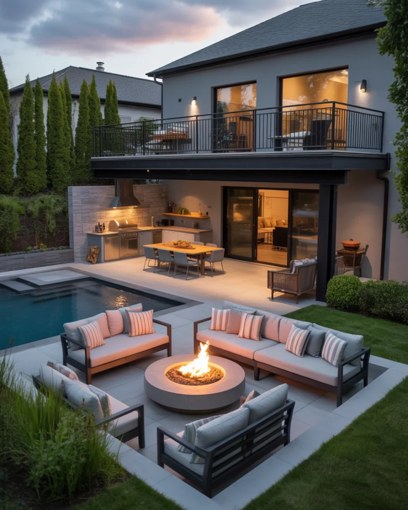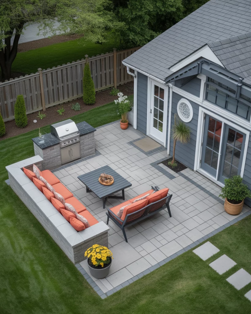 A good layout is the backbone of any successful patio. By clearly separating a layout grill area, a lounging corner, and perhaps a dining space, you create flow and function. Homeowners are now favoring flexible designs that allow spaces to adapt—such as movable furniture or modular pavers that can be reconfigured. Even in a small yard, smart zoning ensures no square foot is wasted. Designers like Bobby Berk note that intentional layouts make patios feel like true extensions of the home.