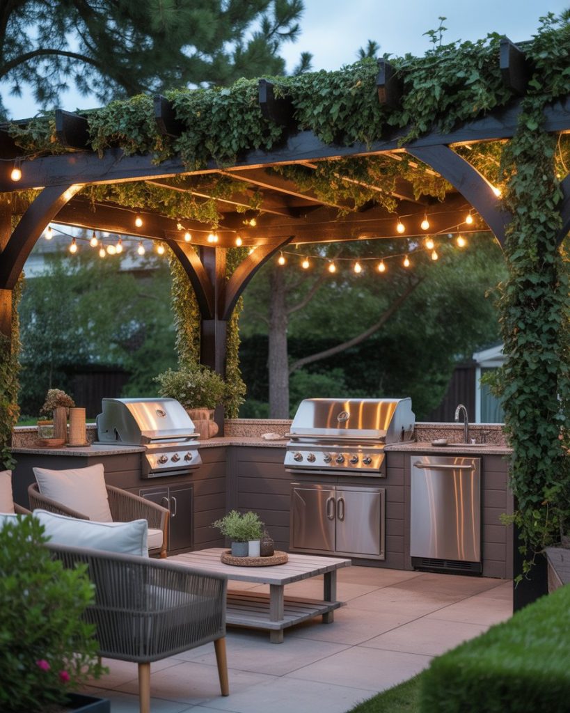 Pergola and outdoor kitchens will be the hottest idea for 2026. The gliding canopy covers the grill and counters so that one can use them rain or shine. Pairing climbing plants will soften the look, and hanging lights will create an ambience at night. The design looks expensive, but you could do a scaled-down version on budget as a DIY job. According to Houzz experts, to integrate it efficiently into an indoor kitchen should incorporate storage and prep areas.