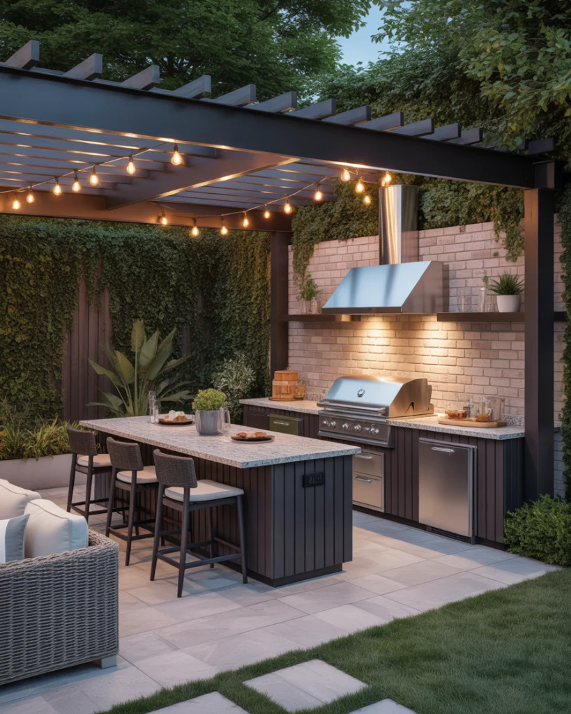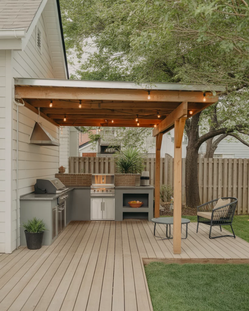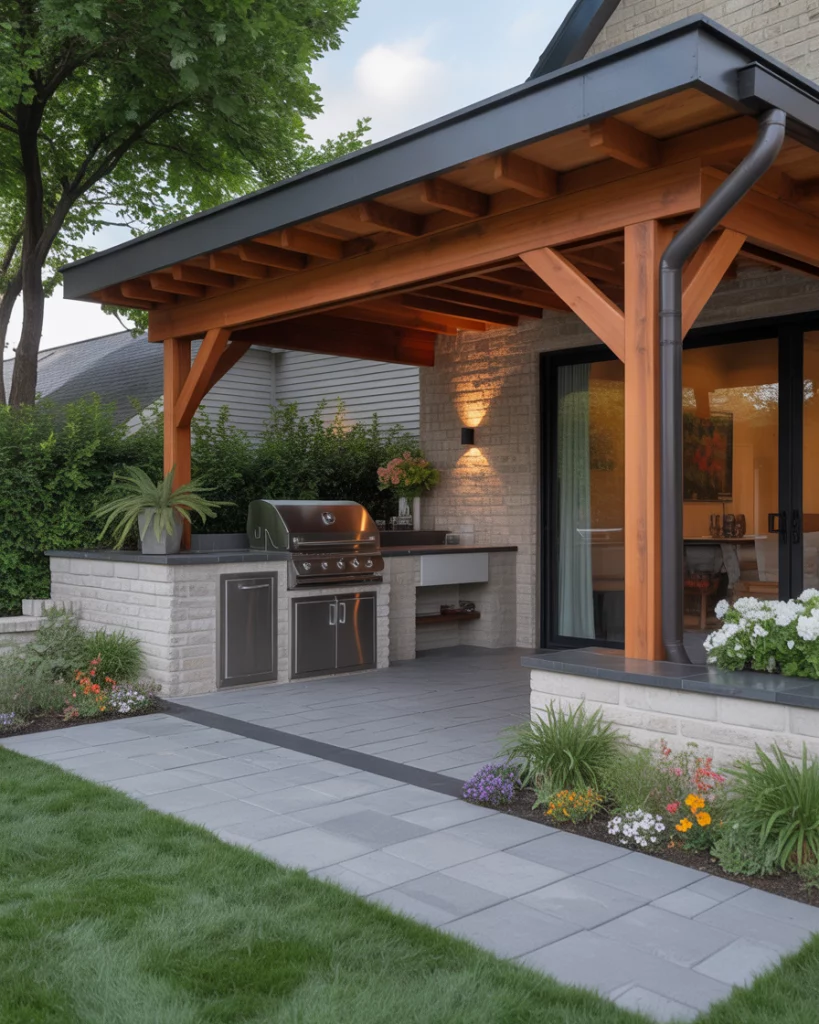 An outdoor kitchen brings serious function to a patio. With a grill, prep counters, and even a mini-fridge, it turns the backyard into the ultimate entertaining hub. In 2026, compact designs are trending, making them feasible even for a small yard. Pairing a kitchen with a covered deck ensures all-weather use. Designers at sites like Houzz stress the value of combining a layout grill area with dining space for seamless entertaining.