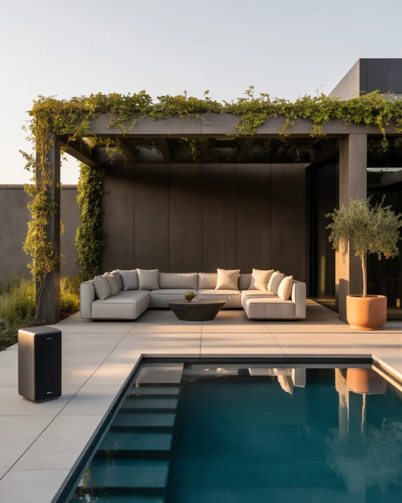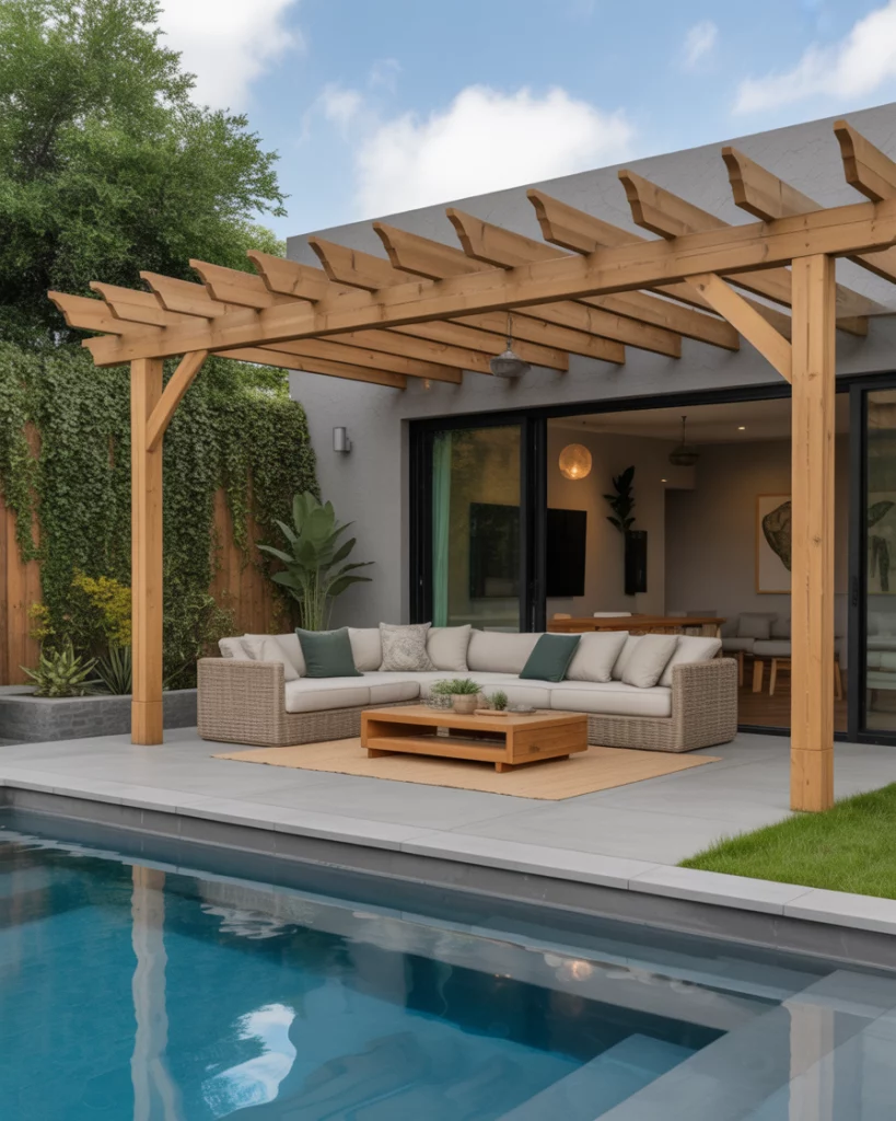Pairing the patio with the pool is a major trend for 2026. Gone are the days of generic pool deck designs; we now see sleek concrete finishes, deck extensions, and areas for shaded lounging. A patio integrated with the pool set-up ensures seamless transitions between the water and the chill zones. Picture shaded cabanas or a pergola that also works as a lounge. Designer Emily Henderson states that with just a few modern touches, you can transform the backyard into a true resort.