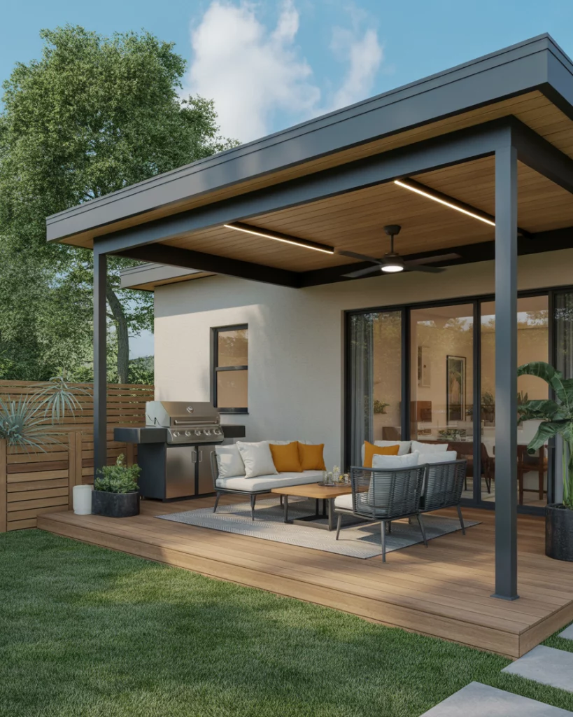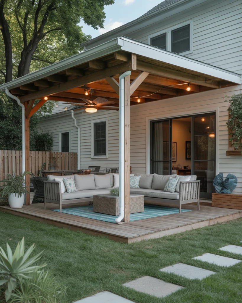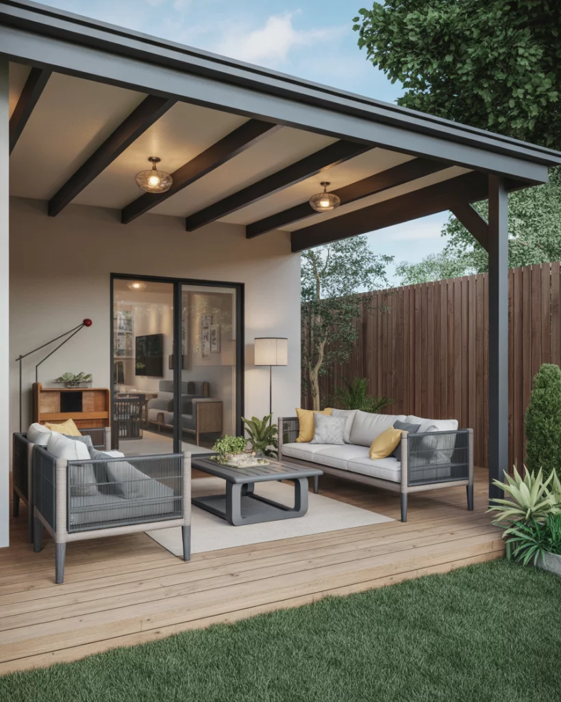 Creating an open lounge on the patio invites relaxation under the sky. Freeing it of roofs or enclosures makes it feel airy and expansive-perfect for warm evenings. Consider adding a little modern seating, string lights, and even a small fire pit for aura. The best part about an open-air lounge is it could very well be rental-friendly because it requires barely any permanent installation. Most homeowners love having an open lounge they can customize for parties, stargazing, or just reading in silence.