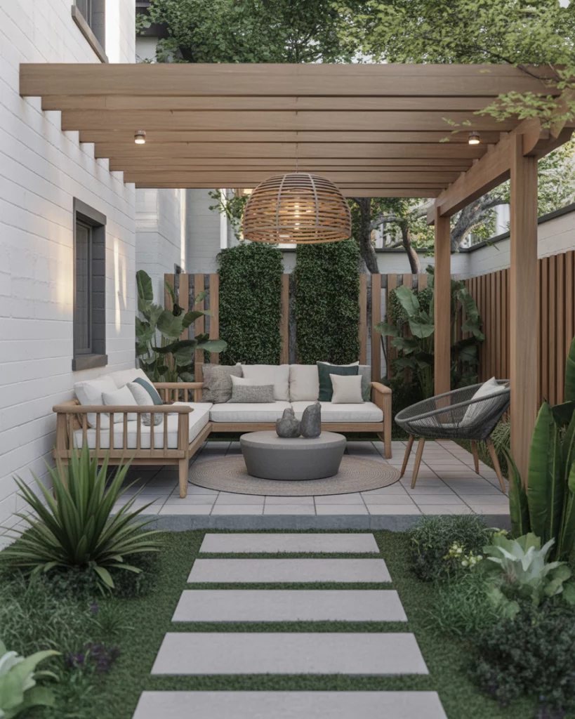 The pergola remains the darling of outdoor design, and the 2026 iteration is very much customizable. Some may lean towards a rustic wood frame while sleek steel with a retractable fabric option is preferred. It would function perfectly well in a small yard that needs structure but does not want to feel too enclosed. Design authors such as Justina Blakeney often cover the idea that an abundance of plants and textiles turns a pergola into a pleasurable hideaway.