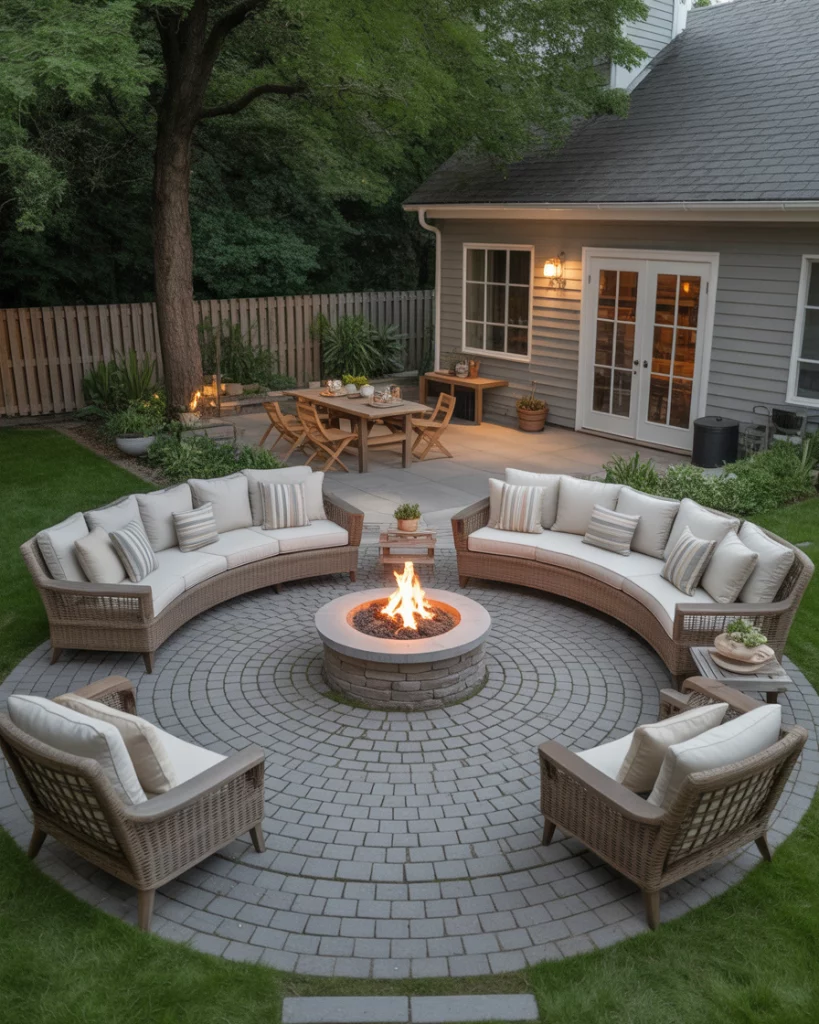 Nothing really does gather people like a fire pit. Beyond creative designs being cast into concrete patios and circular paver frames in 2026, whether you go with gas or wood, they guarantee a gathering spot for patios all throughout the whole year. Naturally, layouts that provide seating surrounding this fire gather people. I have witnessed neighbors sit for hours around these setups; truly, it would be one of the easiest ways to make your backyard welcoming.