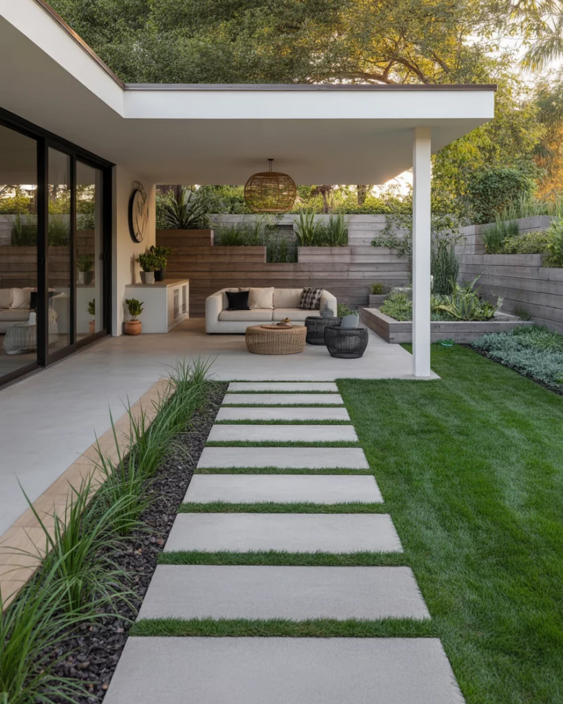 One type of hardscaping increasingly overshadows patios. In 2026, artistic juxtaposition of concrete, stone, and modular pavers will be the big thing. It ensures maximum durability while giving total freedom in designing, especially when followed by greenery for a contrasting element. Less can be more if you think of how to contrast it and balance it; natural meets industrial in this layout. My neighbor’s house very much underwent that change when the grass strips were interspersed with pavers: it looked like an ad.