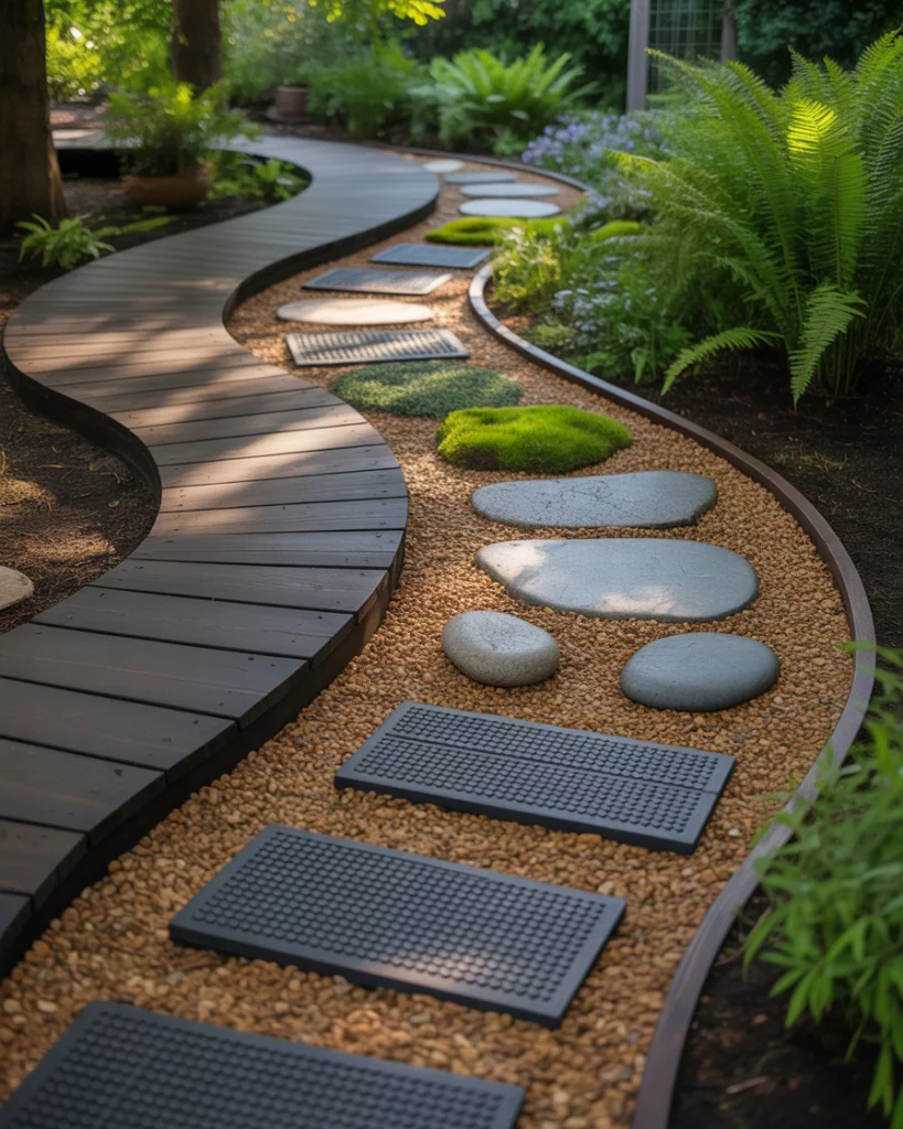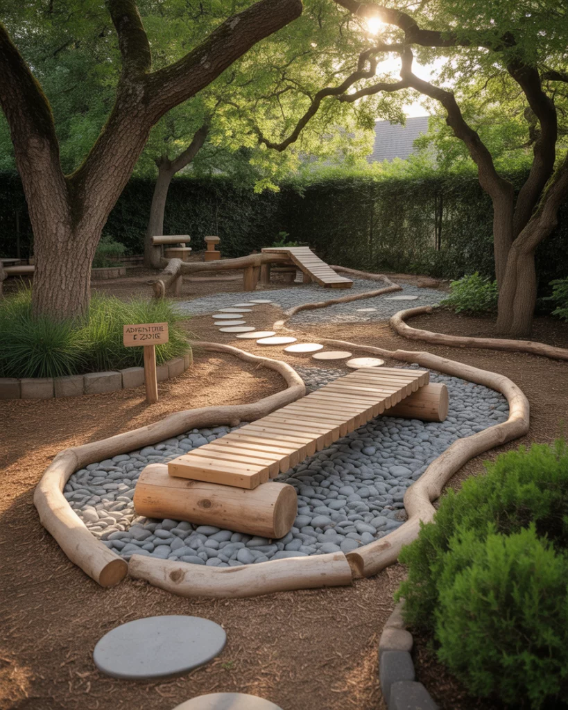 A sensory path is a creative way to stimulate balance, touch, and coordination, especially for toddlers and younger kids. You can make it up with all different kinds of textures which could include something like pea gravel, rubber tiles, or even wooden slats, or moss patches. It is not a project that requires much risk but rather, a straightforward task of making any kids landscaping plan colorful and fun. The different textures keep children engaged and it doubles as a great grounding activity.