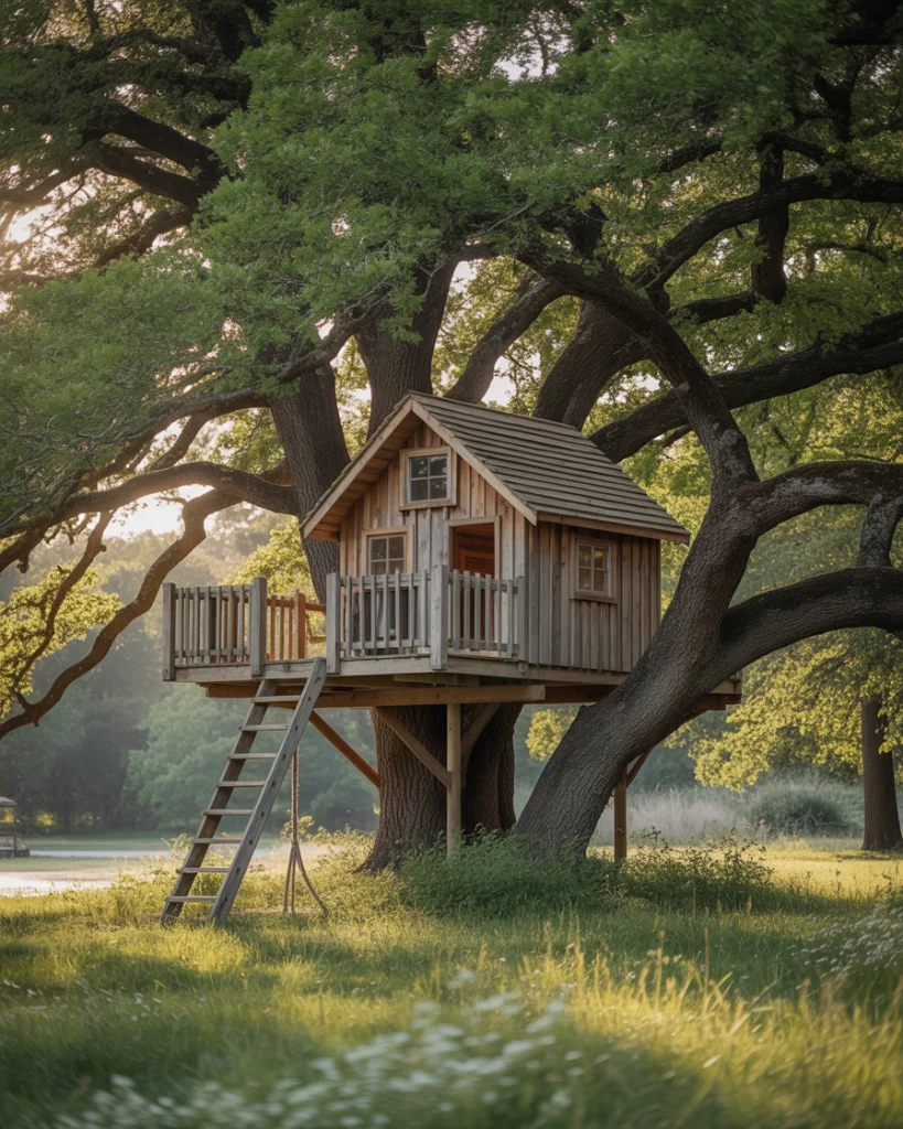 A treehouse is the ultimate childhood dream and an excellent project for older kids who crave independence. When secure with railing and ladders, it can turn into a hideout, reading corner or even a sleep over zone. Join this with hanging lanterns and beanbags and it becomes more than a play area- it has become a personal sanctuary. This idea transforms vertical space into magic and is a perfect DIY project to do as a family.