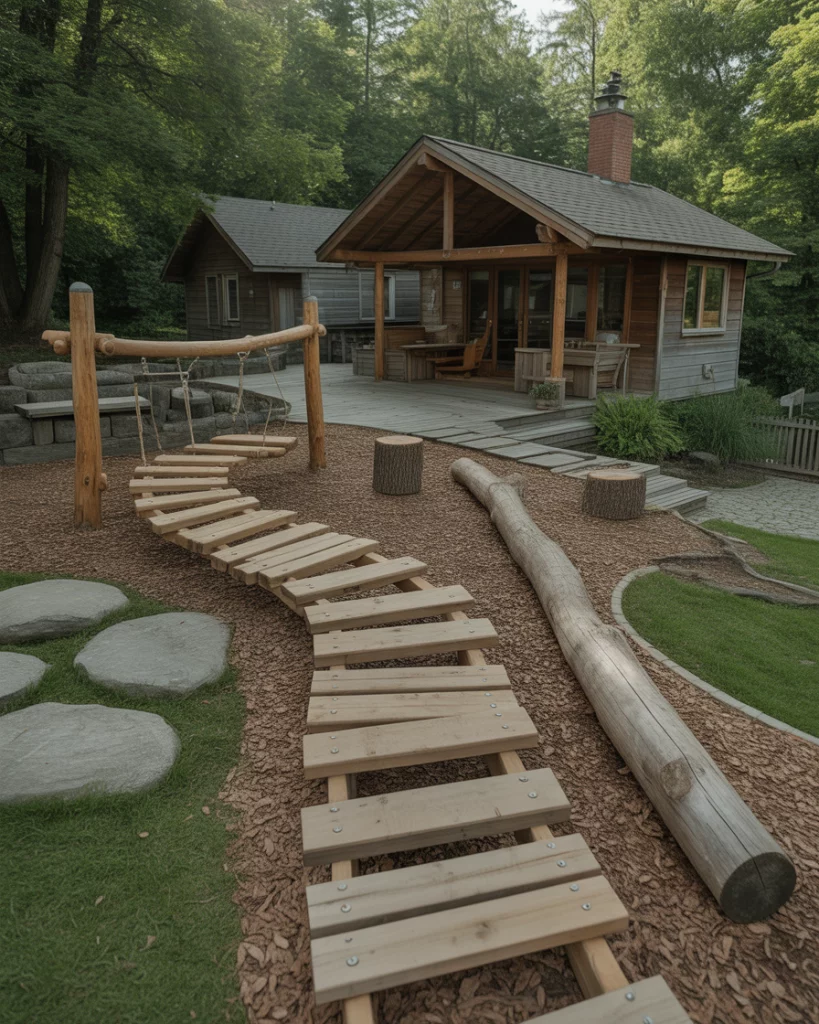 Build a “ninja-style” obstacle path with cheap materials like tires, ropes, and wooden planks. This DIY course enhances balance, strength and agility and can be restructured depending on age. It’s especially fun for older kids and creates endless entertainment without needing a big footprint. Tie it into the yard’s landscaping and let kids help with the build.